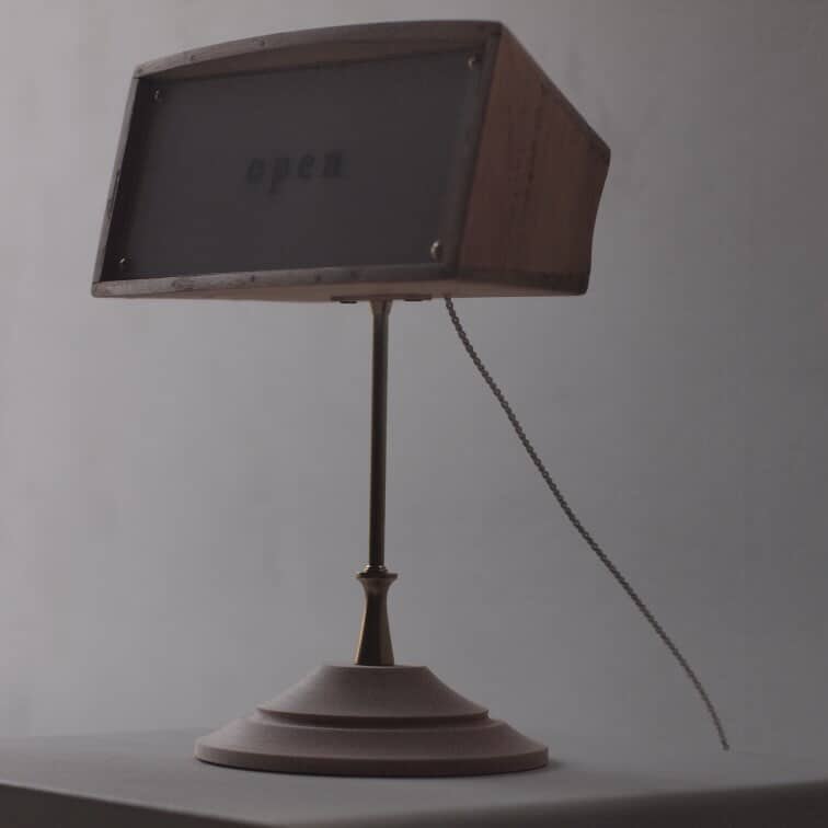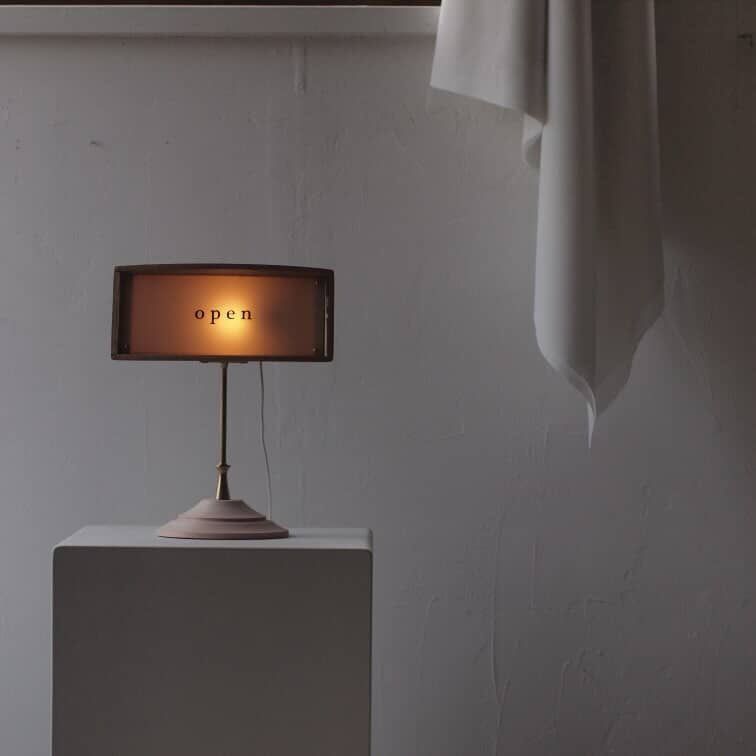 灯すと、アクリル越しにやわらかく滲む光の中に、静かにopen文字が浮かびます。