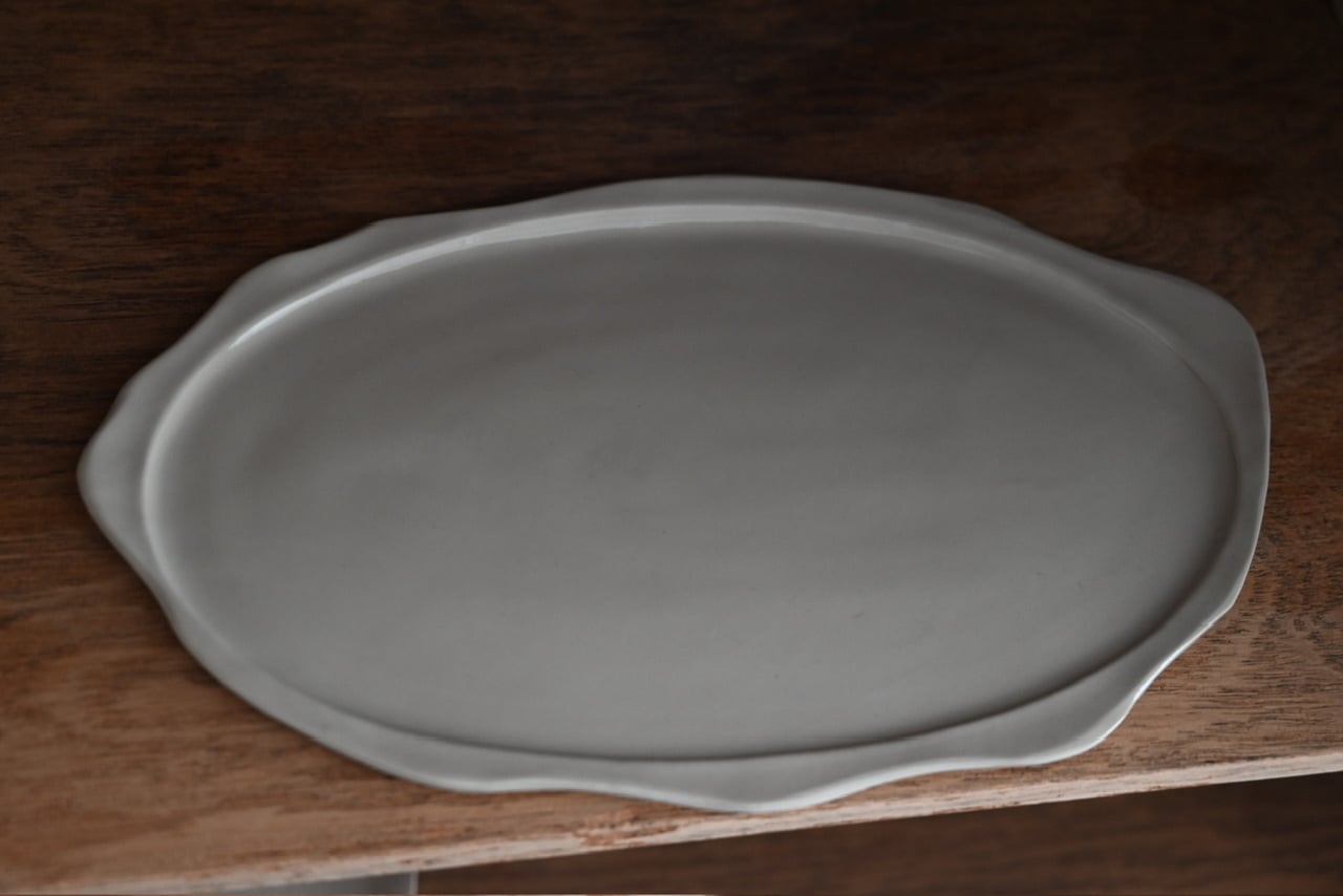 ふわふわ決まりのないリムのオーバルプレート。