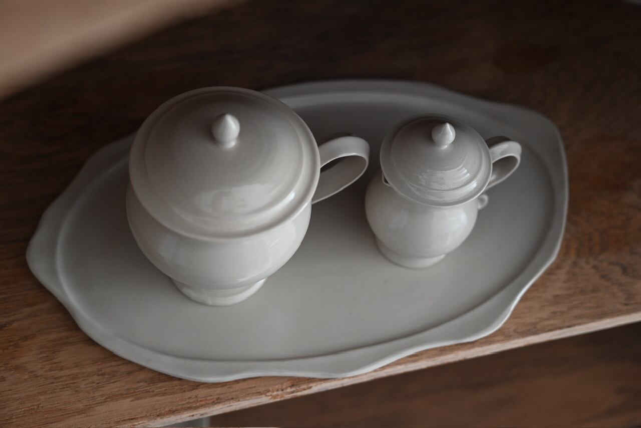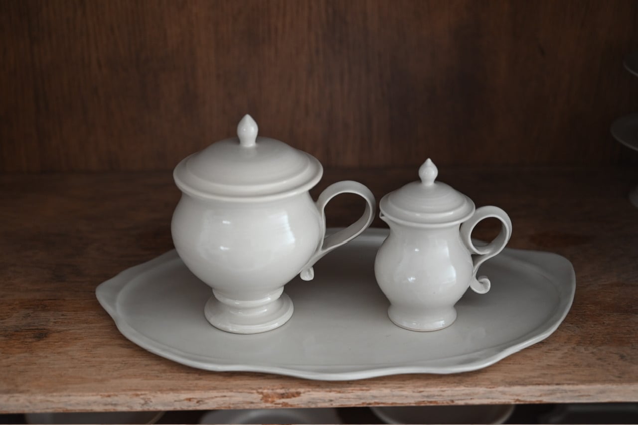 別売りの蓋付カップとミルクポットが丁度よくのせられます。
