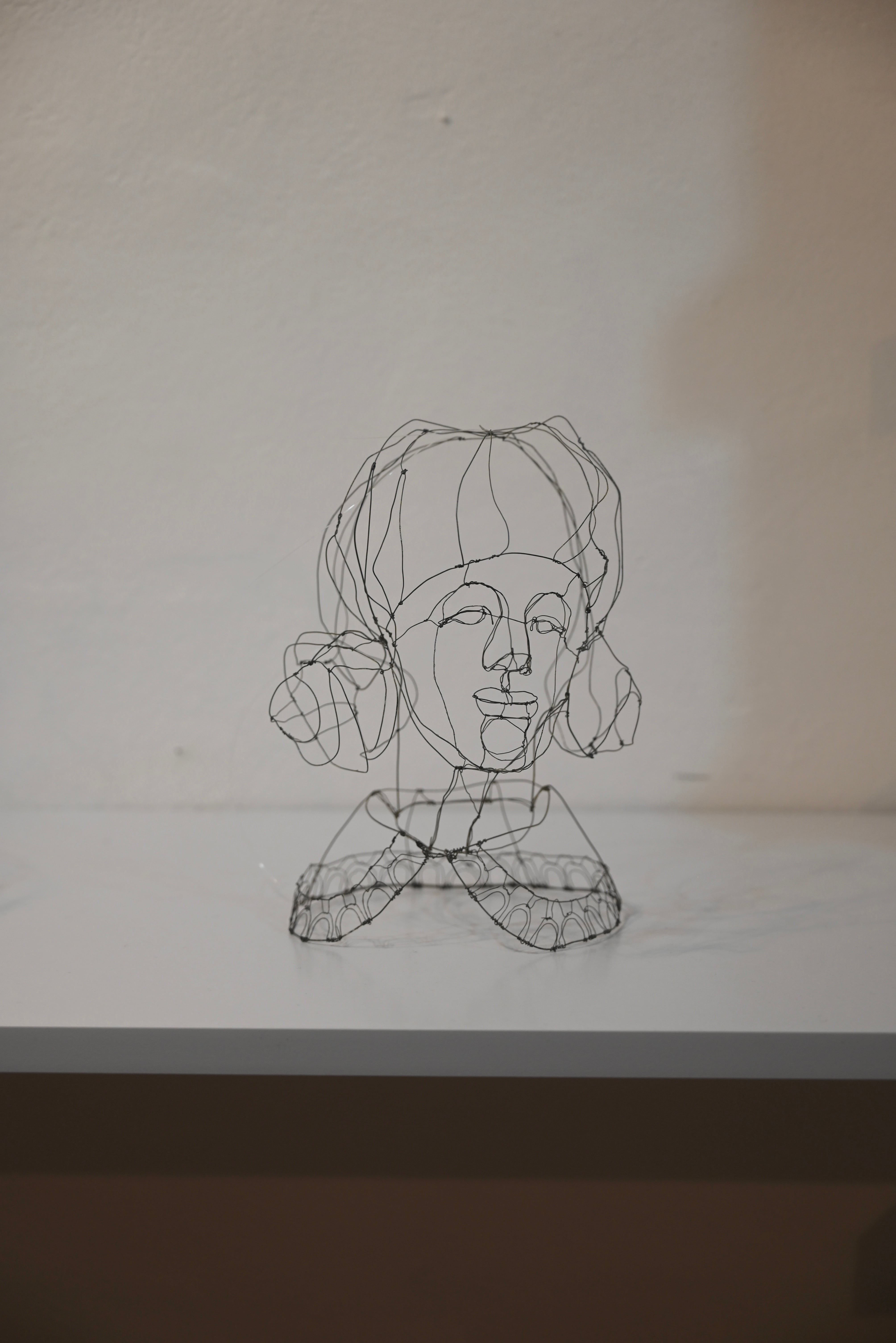 極細のワイヤーを使用、繊細な線が魅力の人物のワイヤーアート作品です。