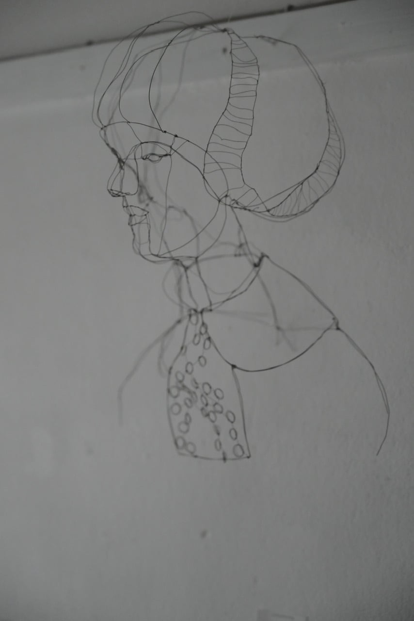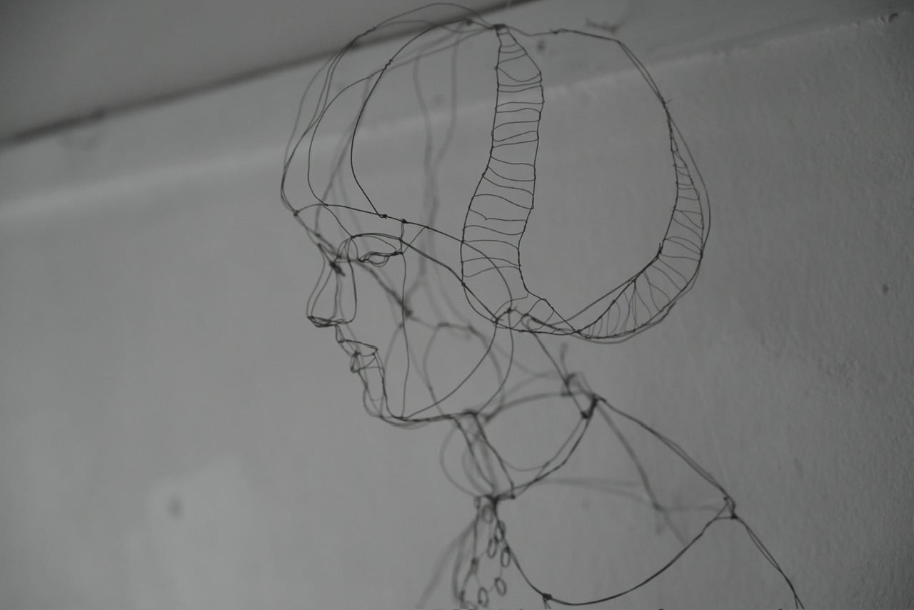 極細のワイヤーを使用、繊細な線が魅力の人物のワイヤーアート作品です。