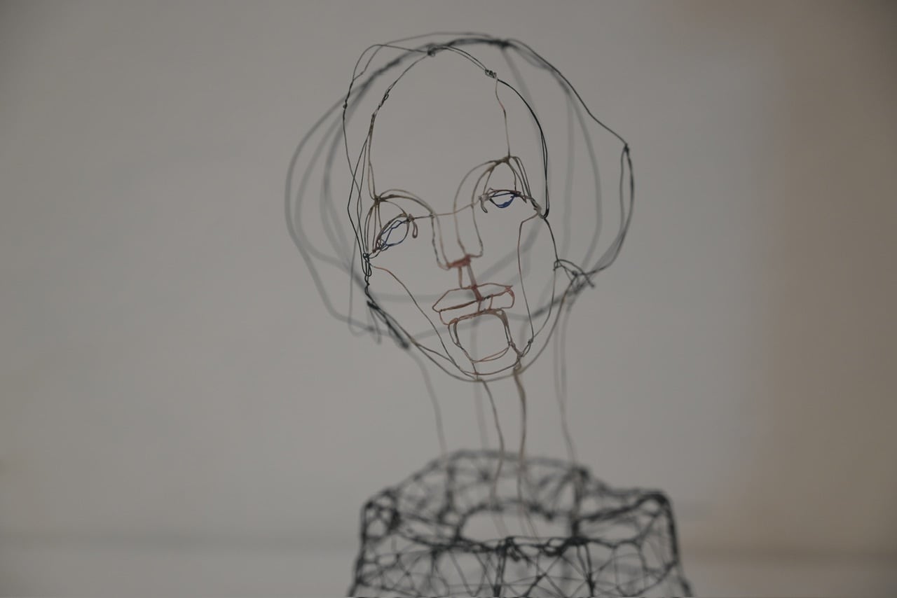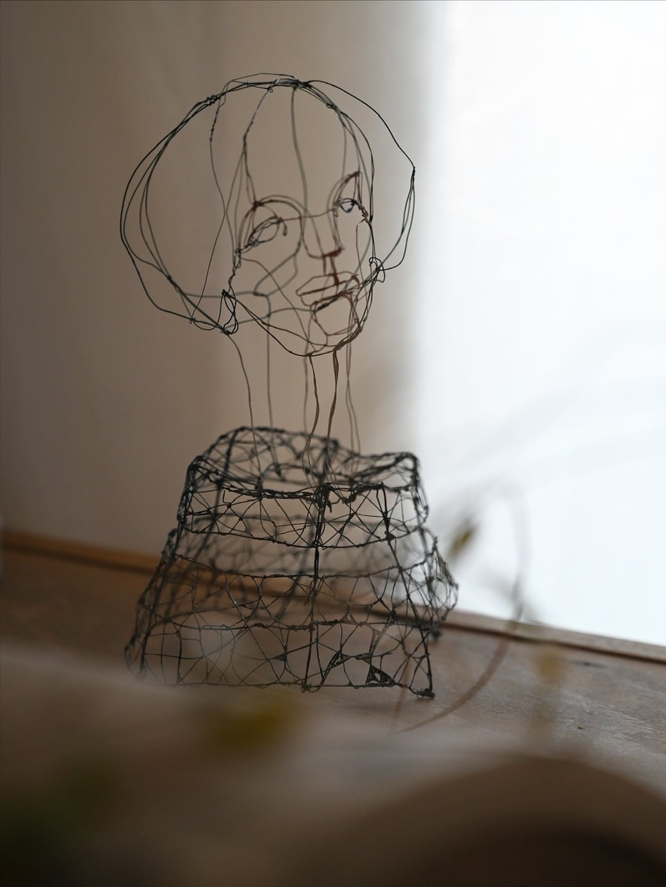 極細のワイヤーを使用、繊細な線が魅力の人物のワイヤーアート作品です。