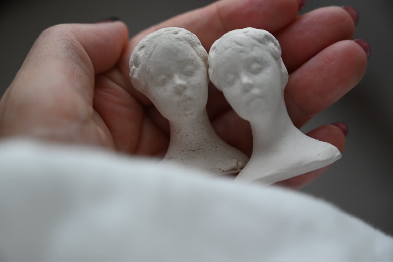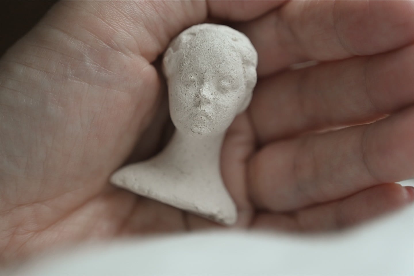 焼成はせず、乾燥により完全に固まります。重量は石よりも軽く、白色度の高い素材です。 制作時は柔らかく 乾燥によって固まり、石のように硬くなります。 磨くとツヤがでます。