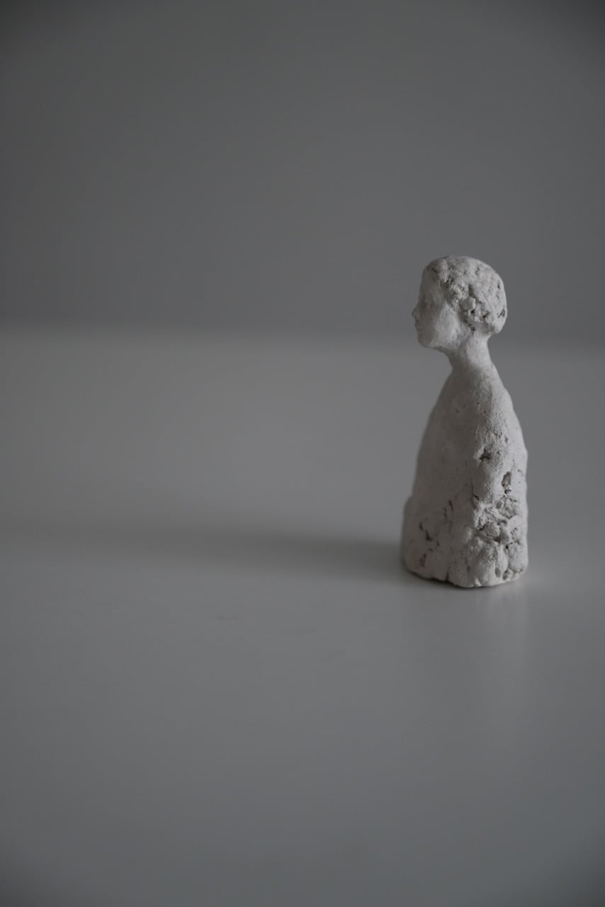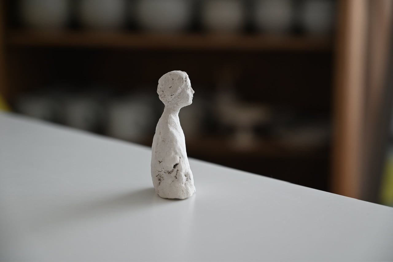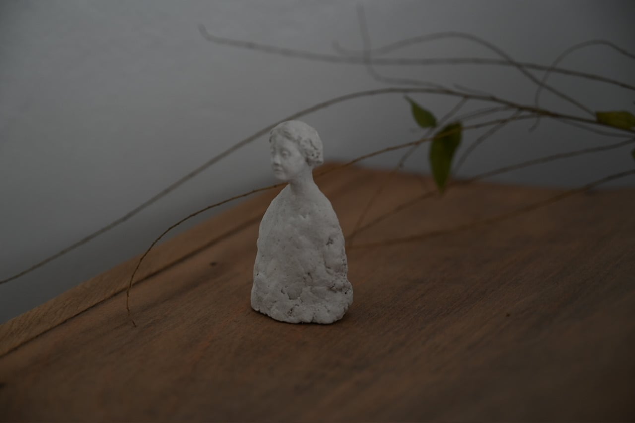 焼成はせず、乾燥により完全に固まります。重量は石よりも軽く、白色度の高い素材です。 制作時は柔らかく 乾燥によって固まり、石のように硬くなります。 磨くとツヤがでます。