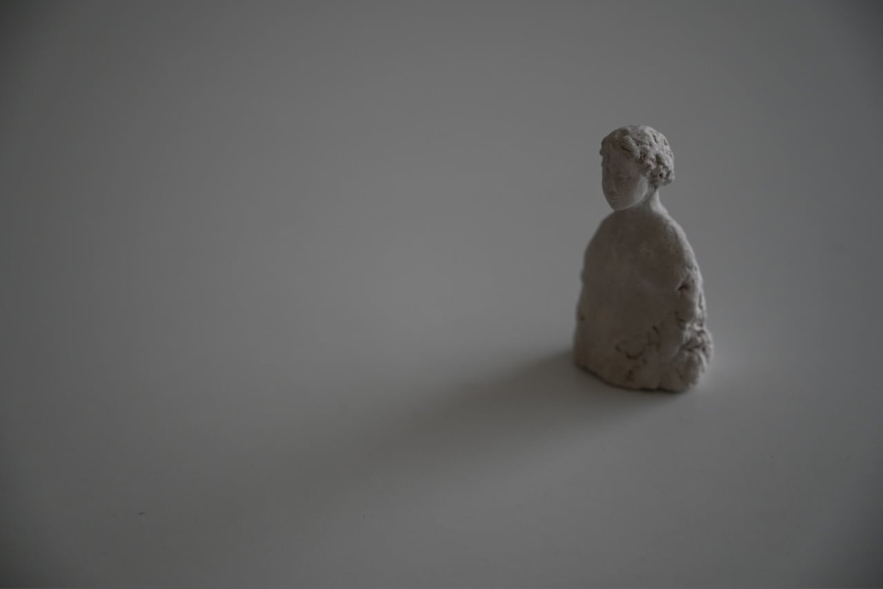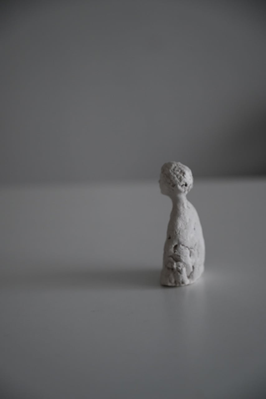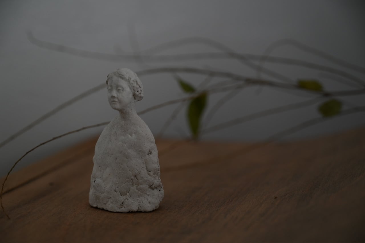 焼成はせず、乾燥により完全に固まります。重量は石よりも軽く、白色度の高い素材です。 制作時は柔らかく 乾燥によって固まり、石のように硬くなります。 磨くとツヤがでます。