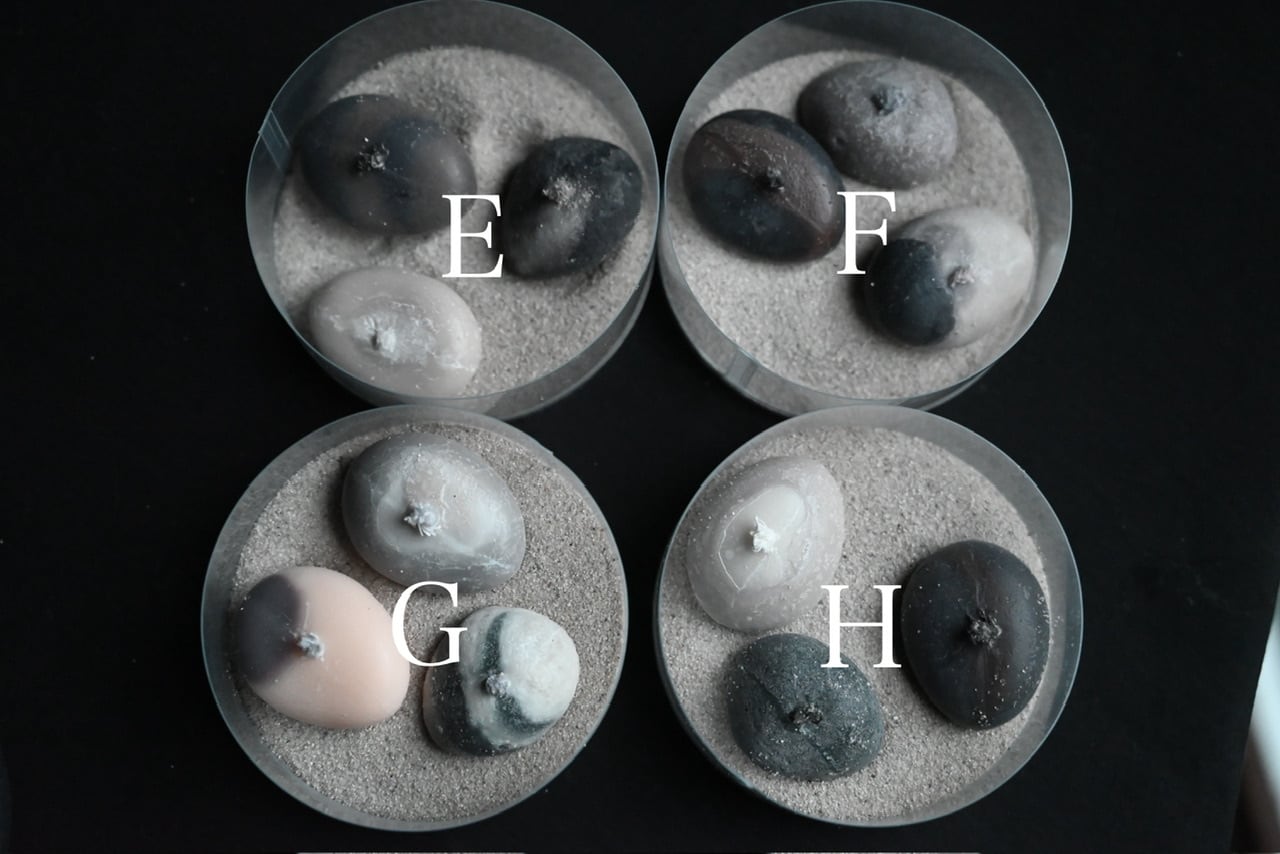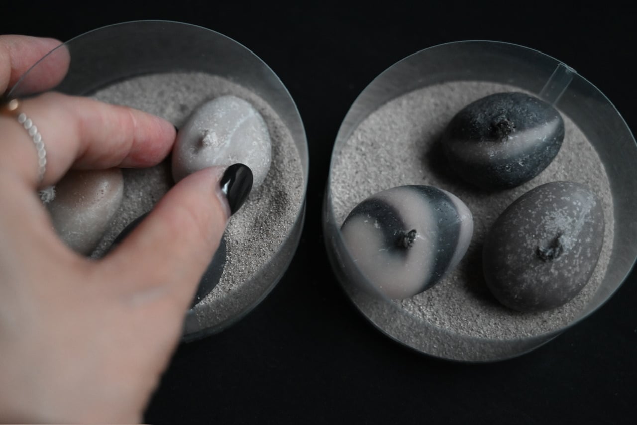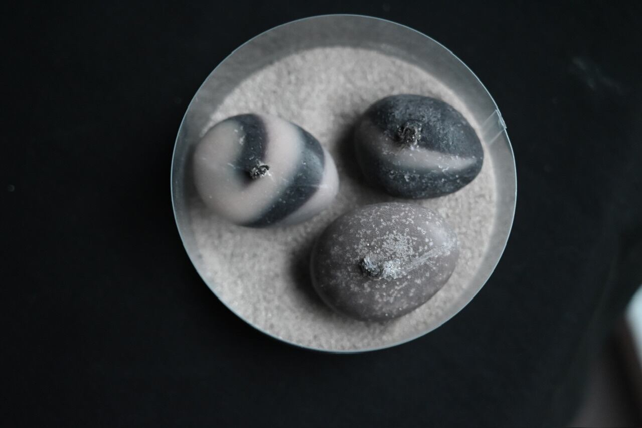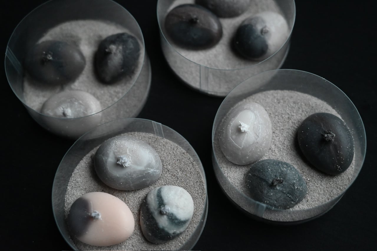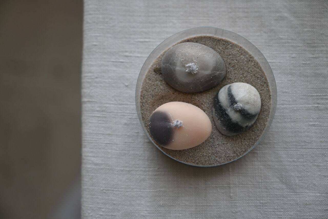 石のモチーフの蝋燭、溶けて砂とひとつに。