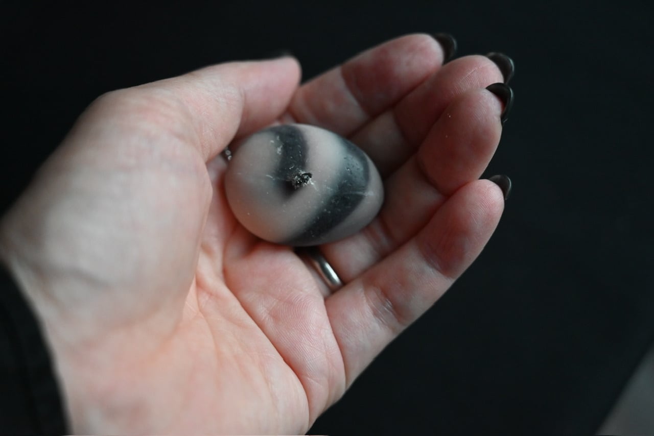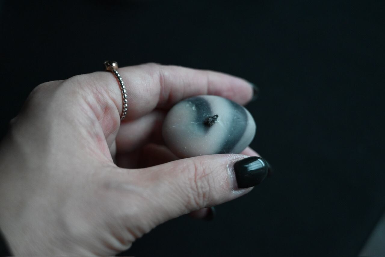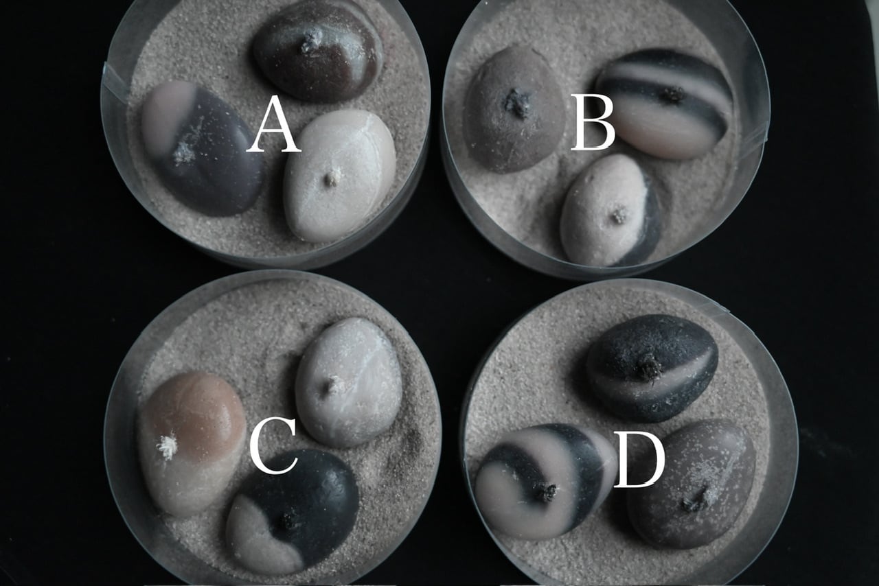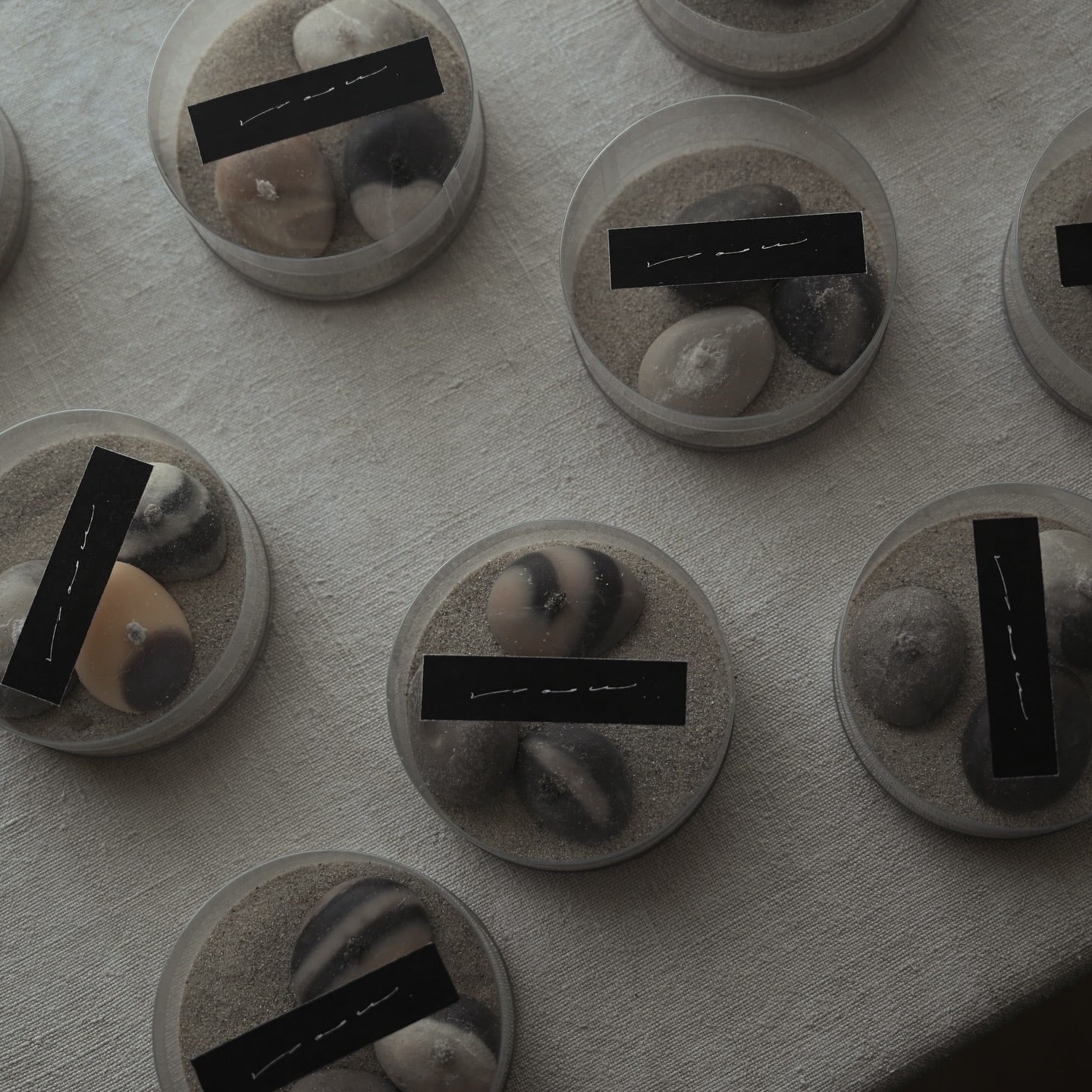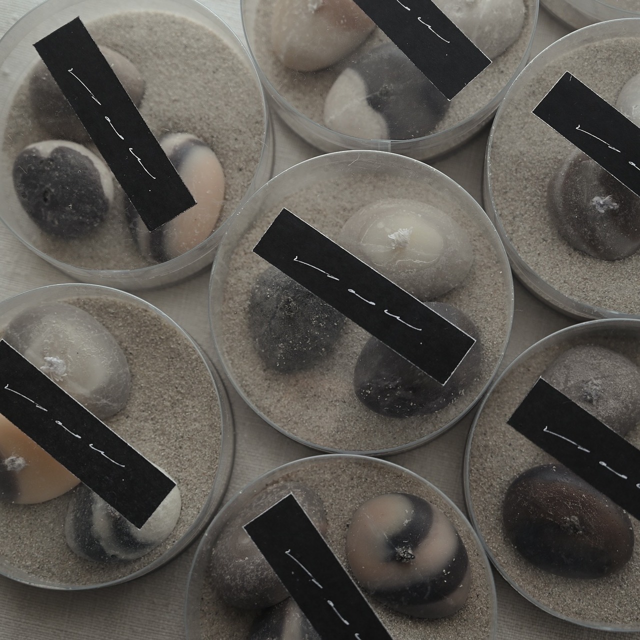 石のモチーフの蝋燭、溶けて砂とひとつに。