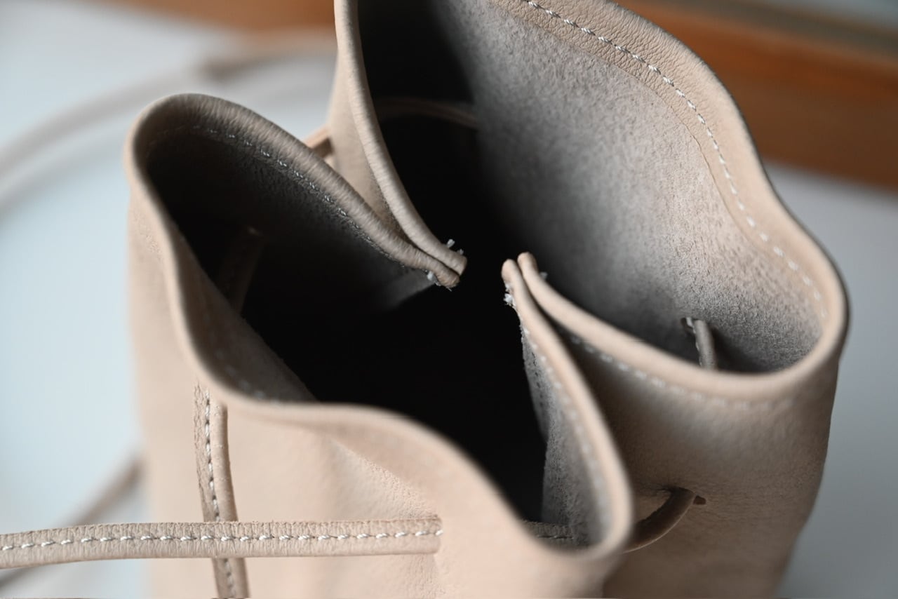 縫製後に1点ずつ洗いをかけて仕上げています。乾かす過程で揉みこんで成形することにより独特の表情を持たせています。