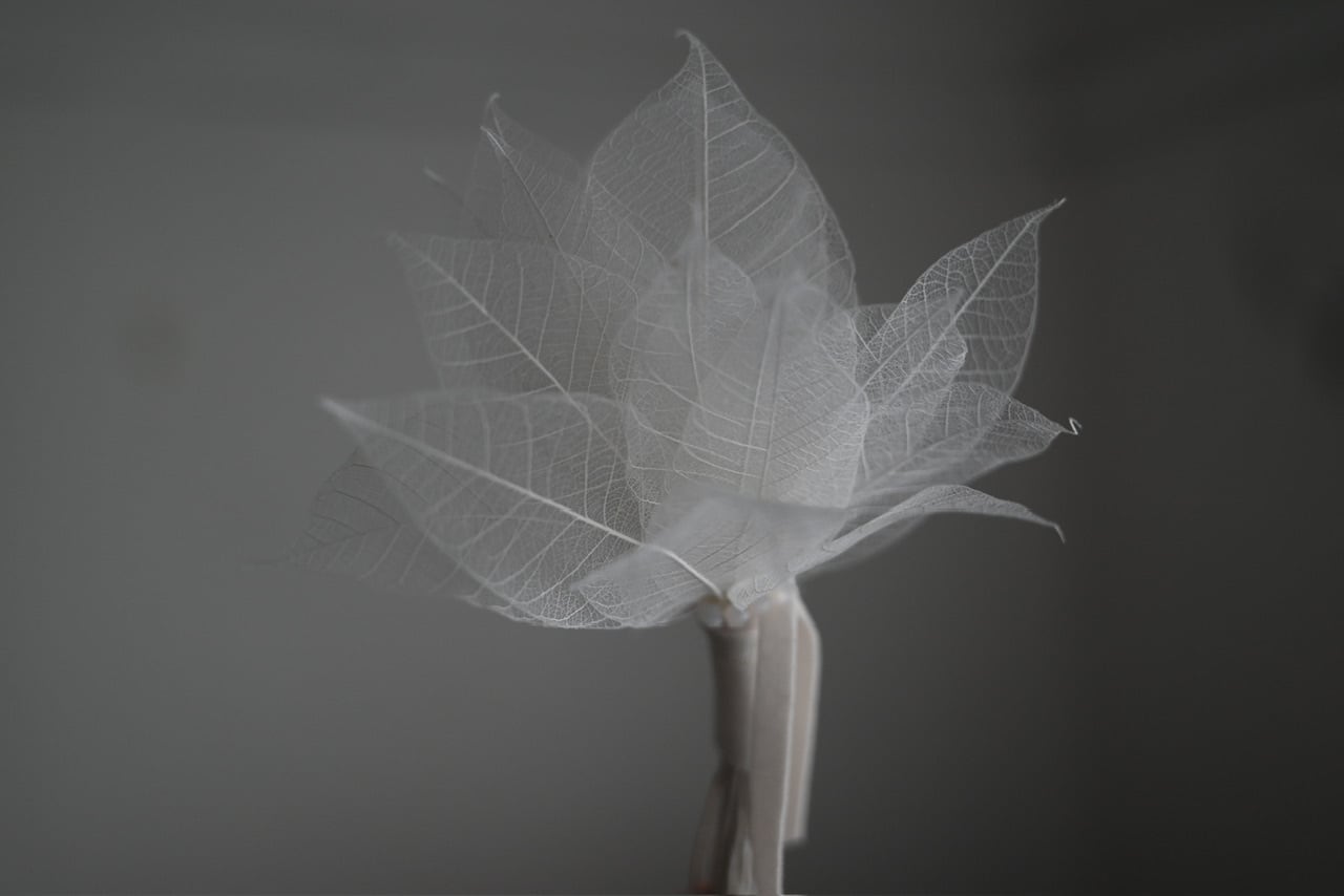 透き通った葉脈のリーフを重ねてまるでレースのようです。