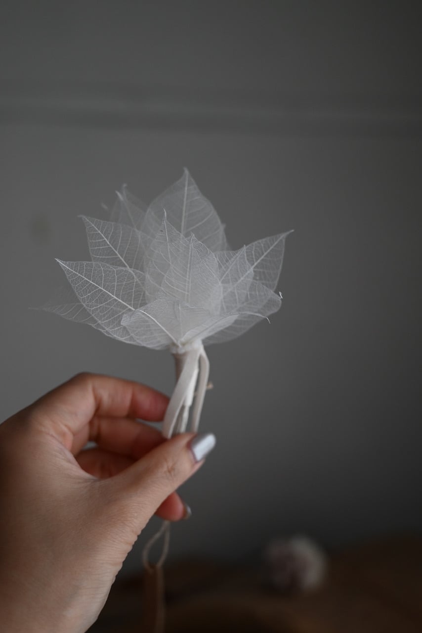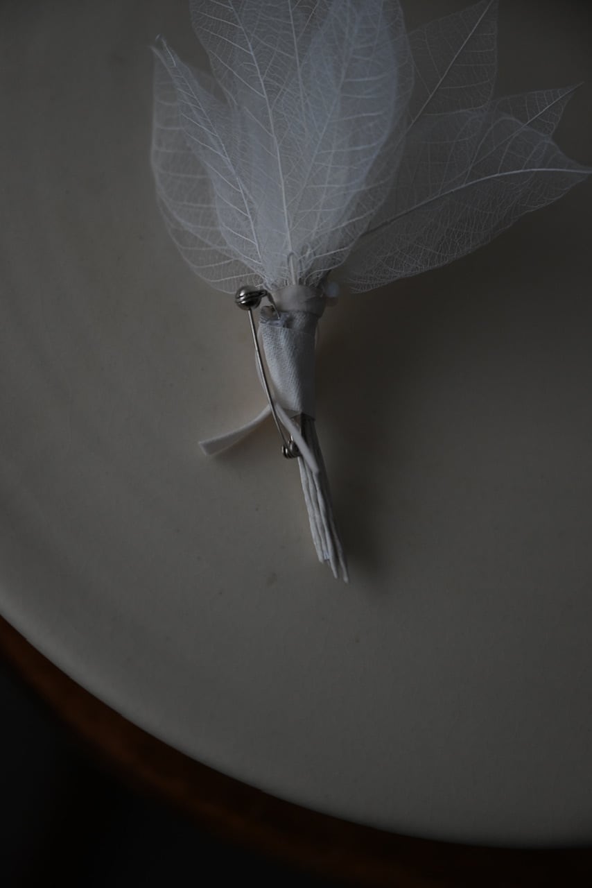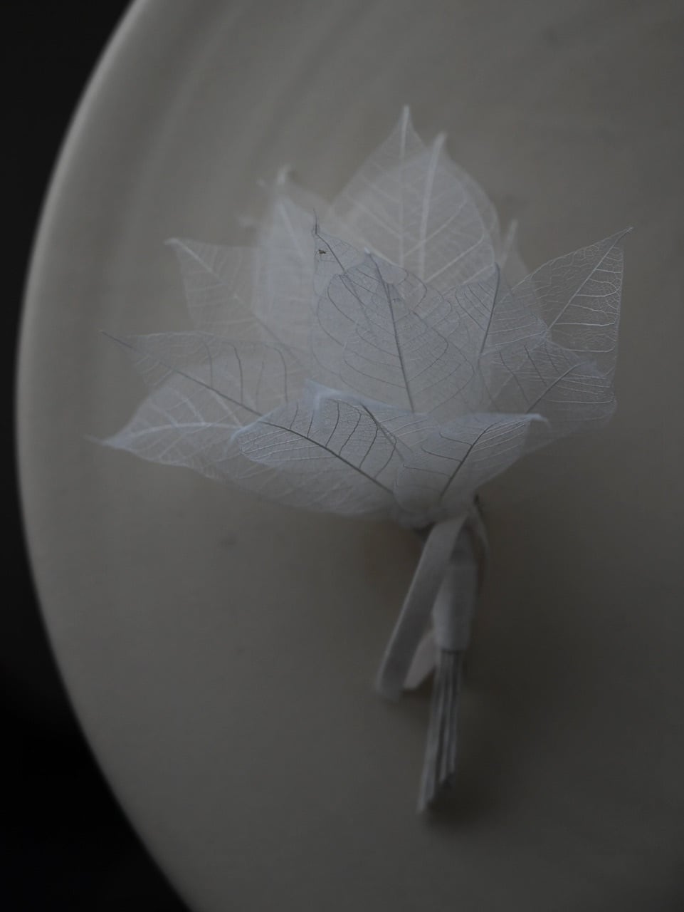 【3/9迄掲載】 kukka リーフコサージュ白 プリザーブドフラワー