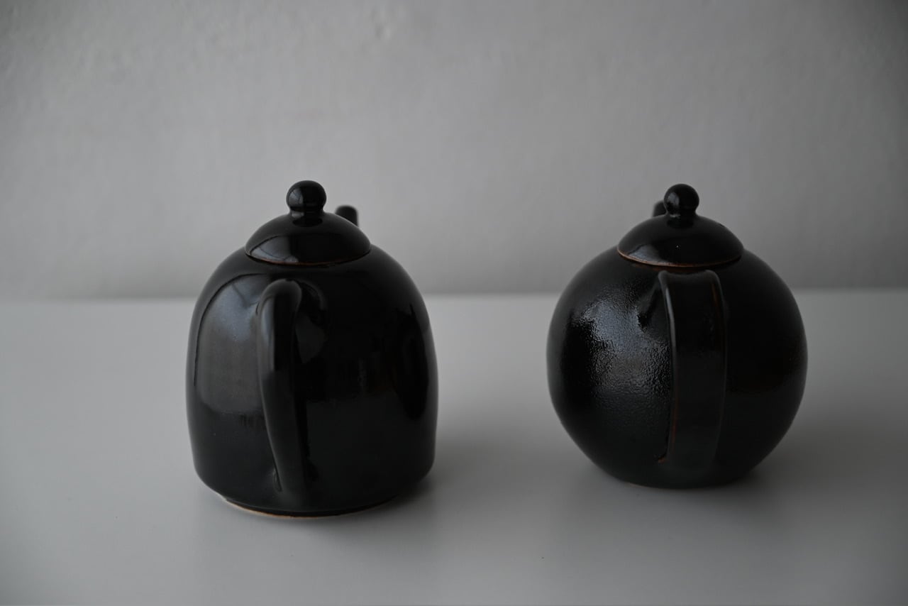 形状の異なるふたつのティーポットです。