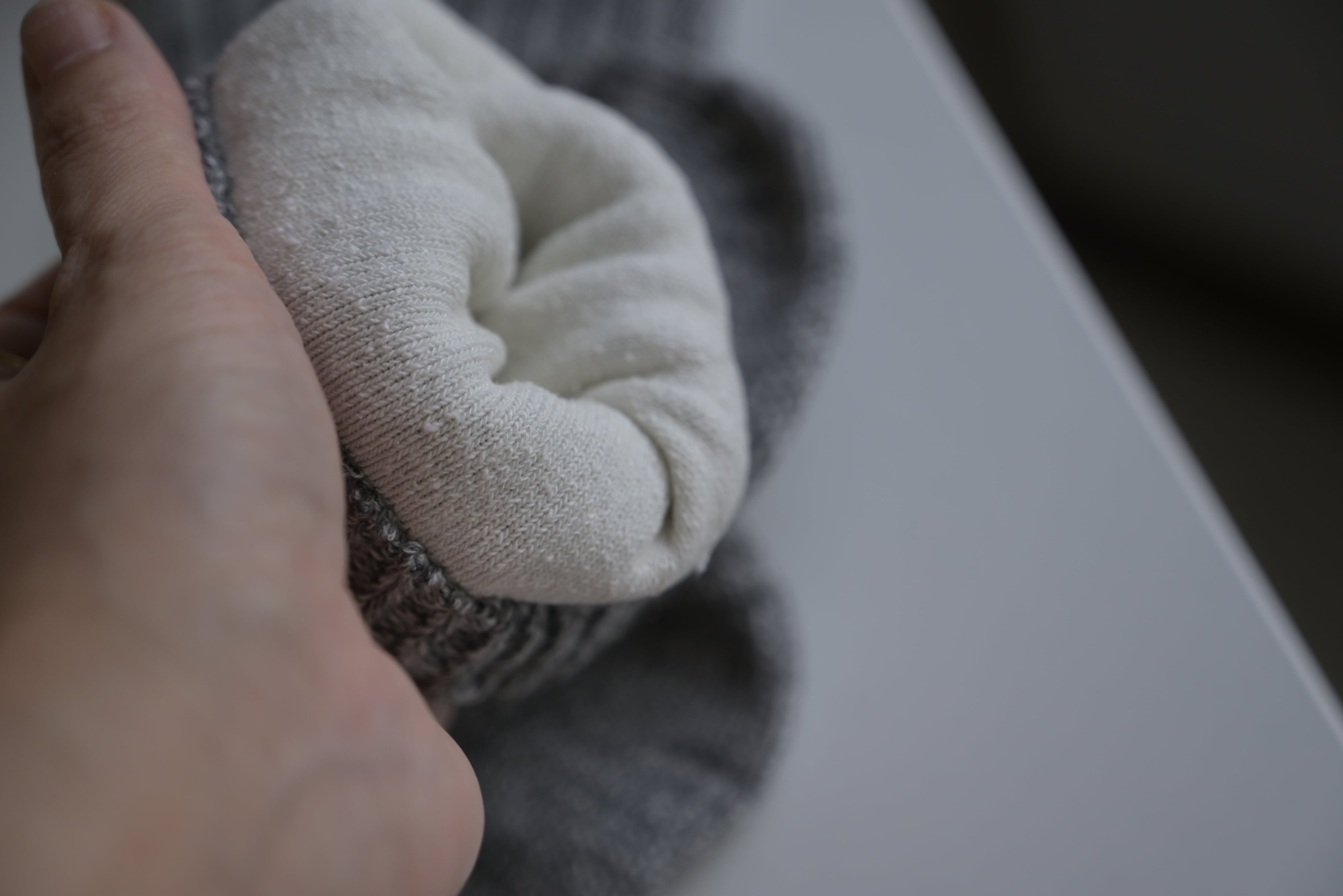 外側がコットン、内側がシルクの2重構造であたたかいのに通気性があって蒸れない。