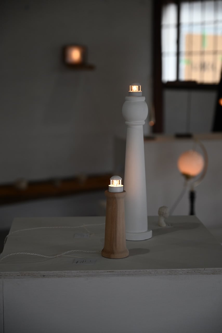 手のひらに収まるほどの小さな白い灯台が、卓上にひっそりと灯ります。