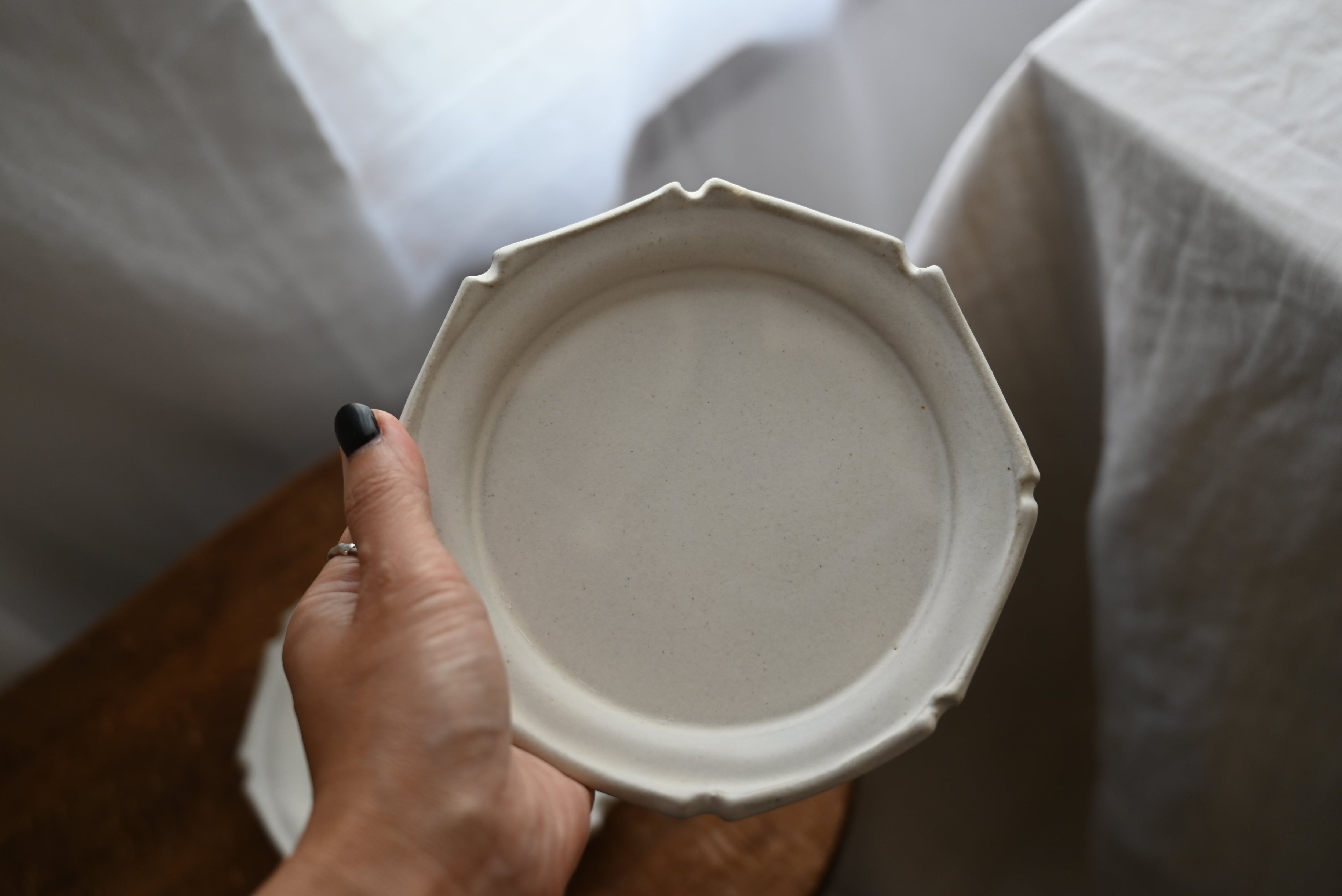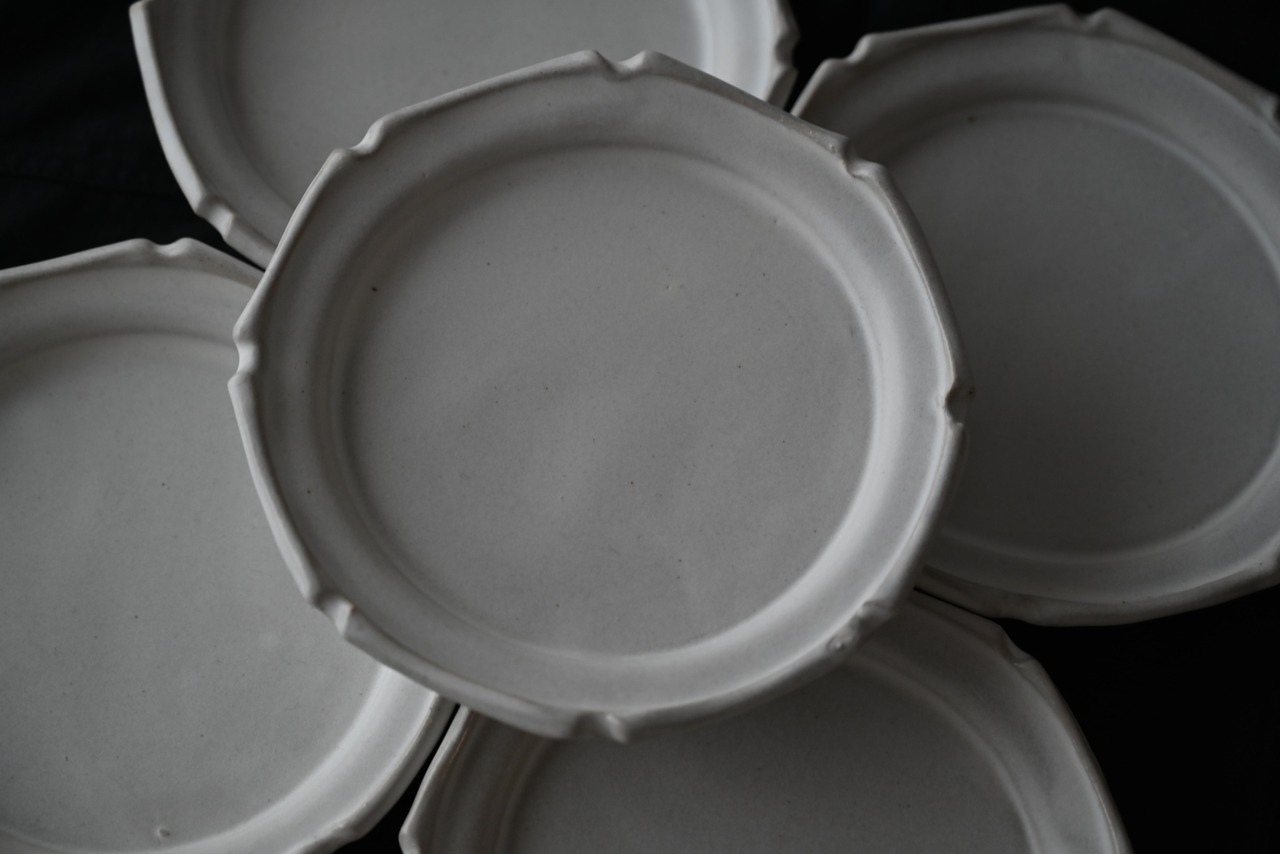 使い勝手よく厚みある丸皿ですのでデザートの他、取り皿としても。