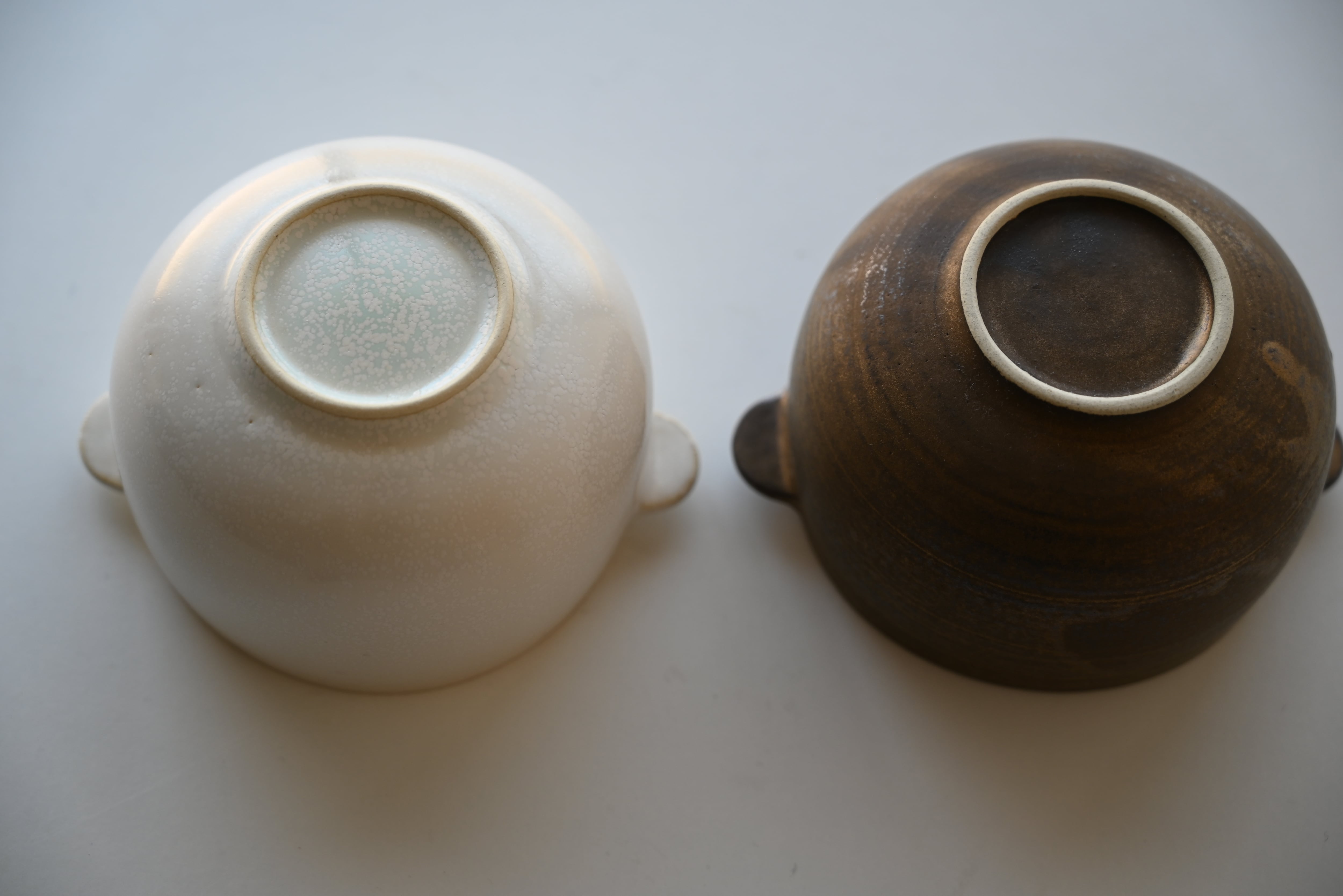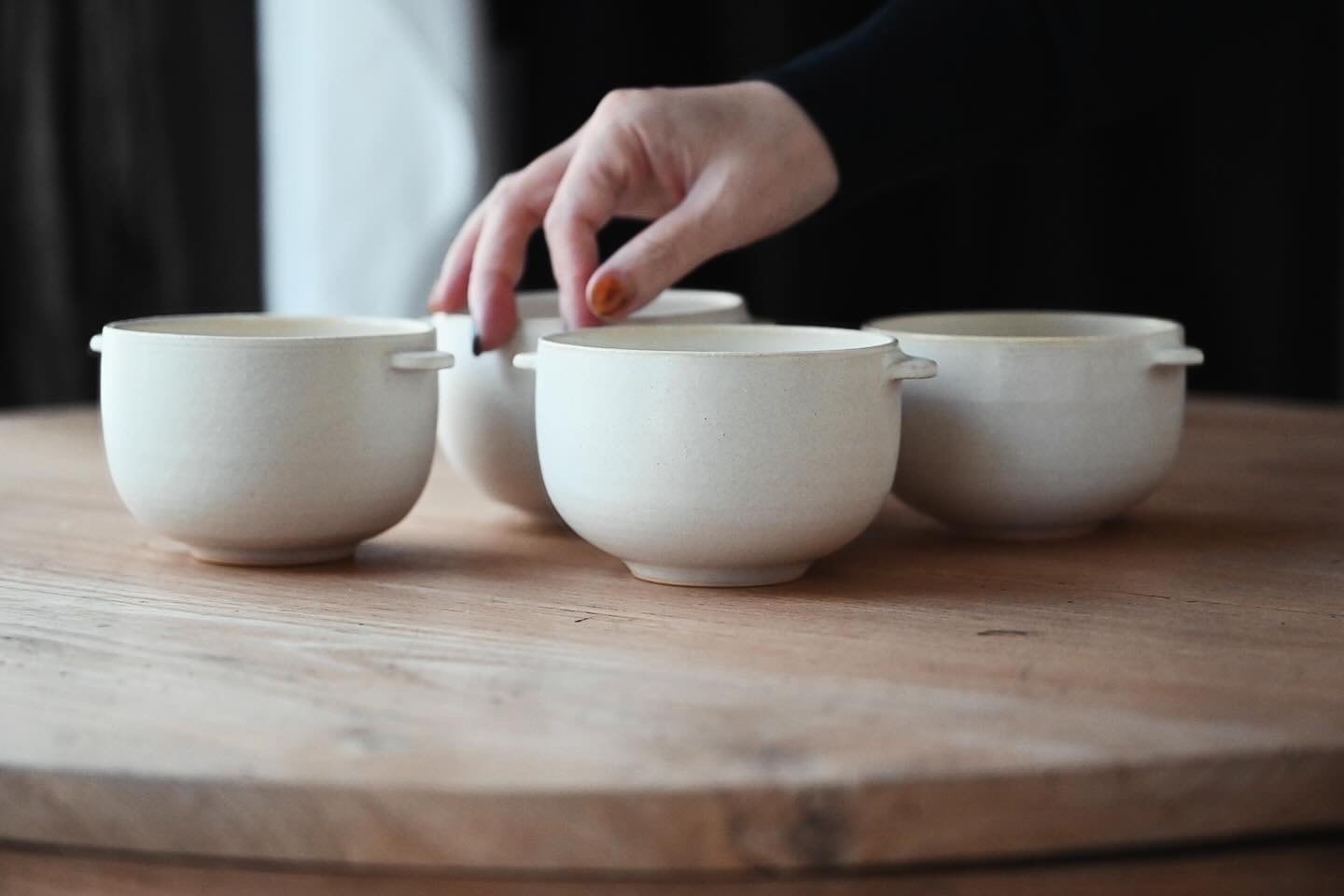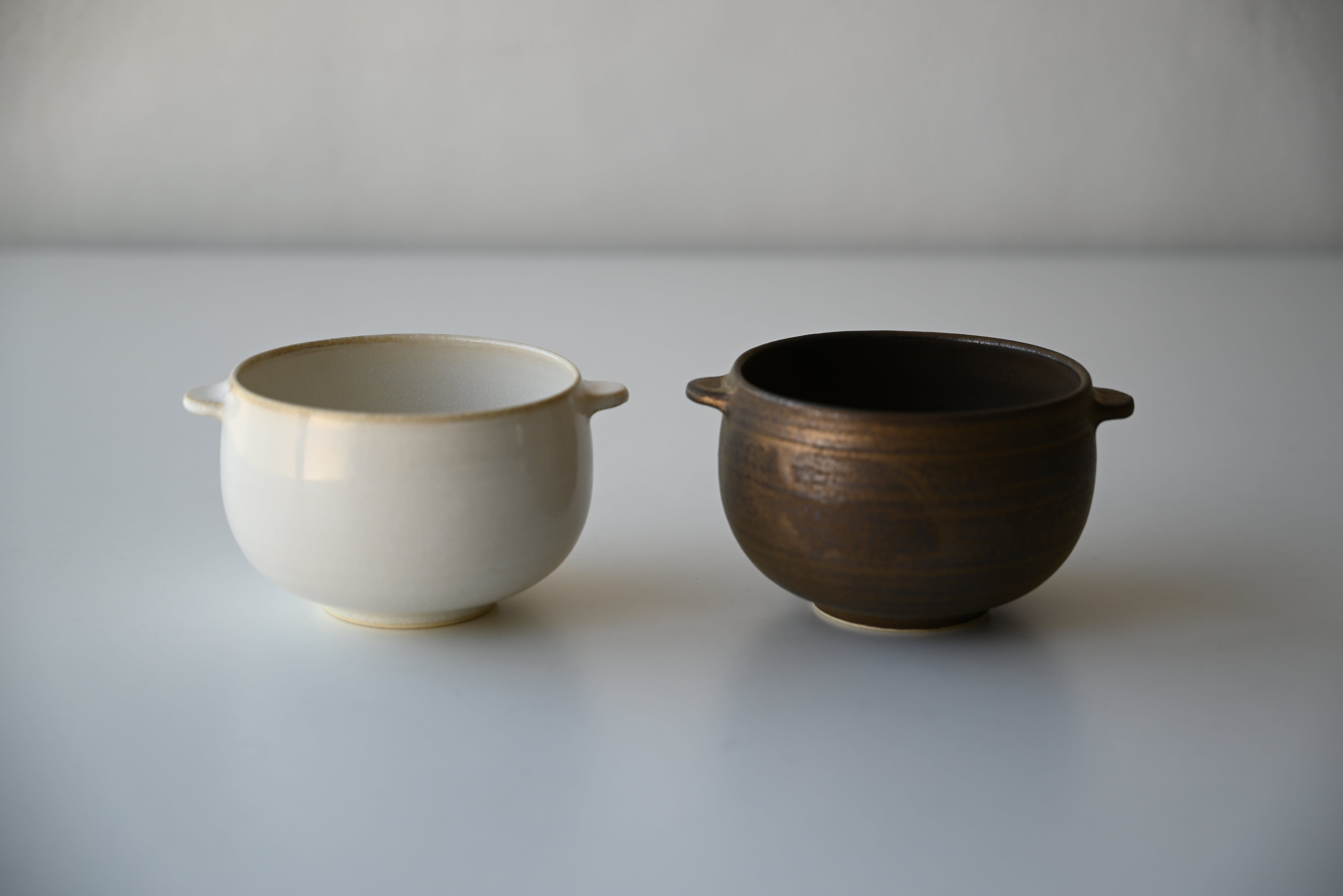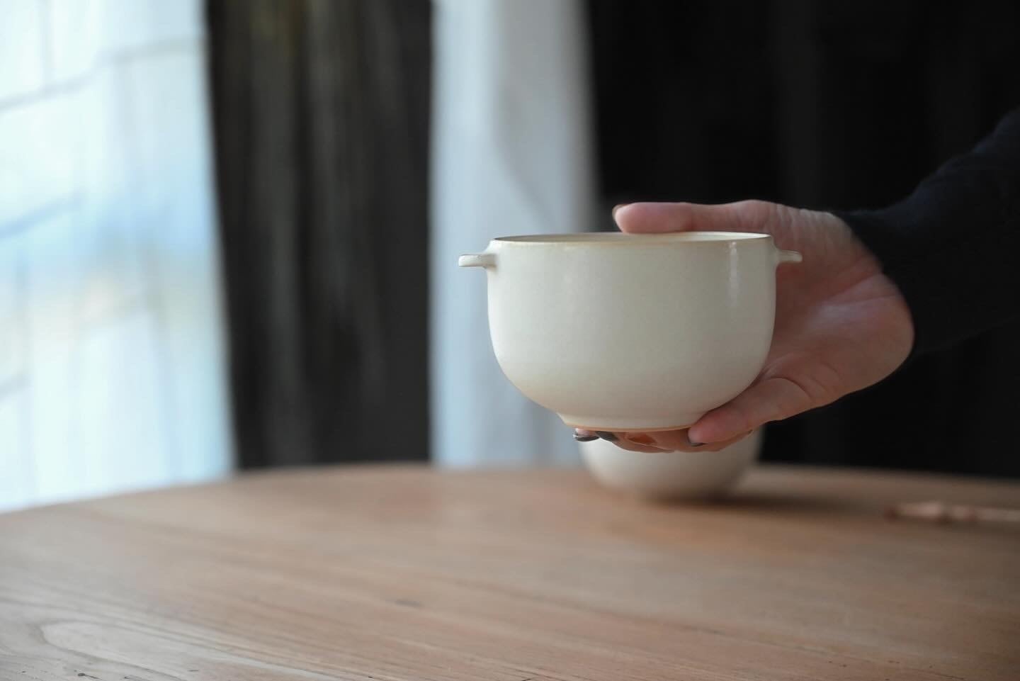 まるみのあるフォルムに小さな耳付きが愛らしいスープカップです。