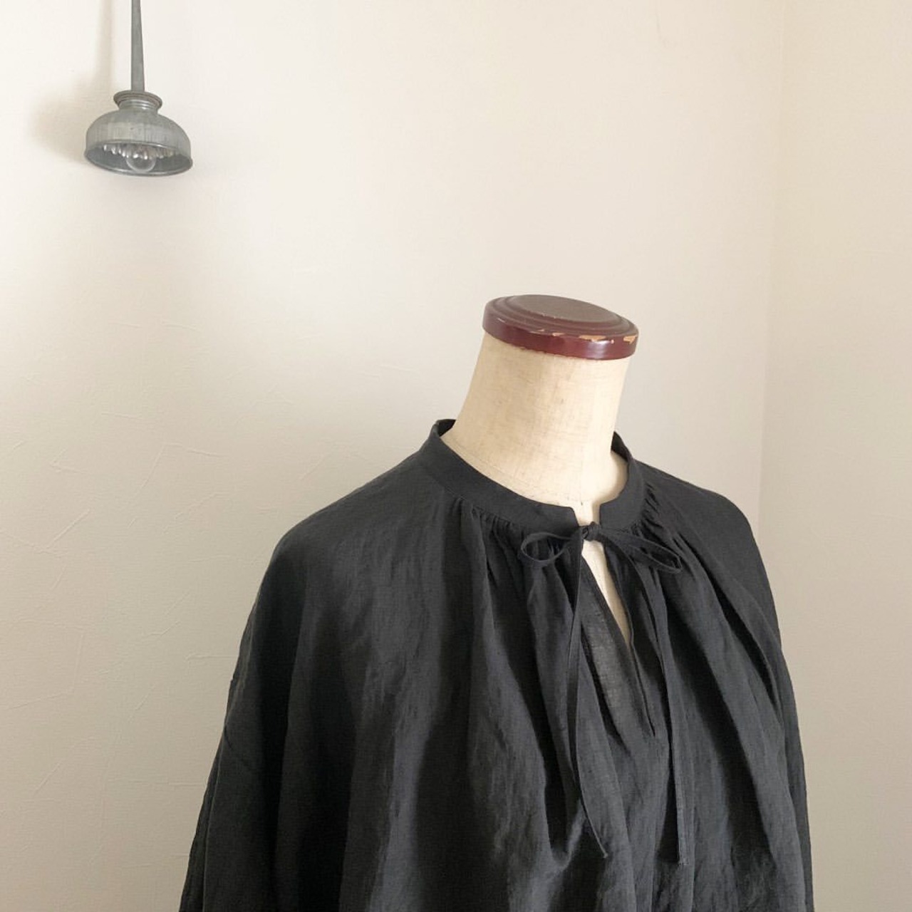 atelier naige ribbon tie blouse リネン黒