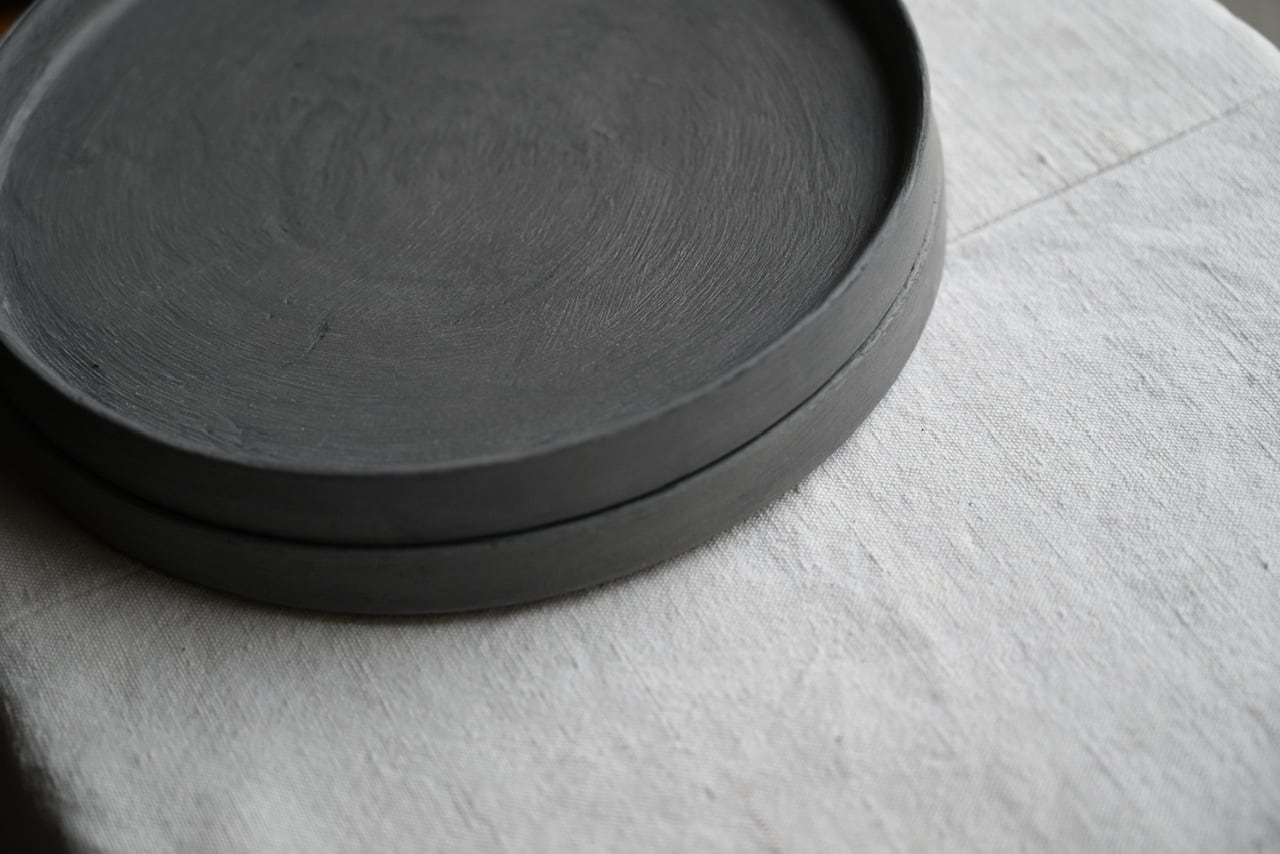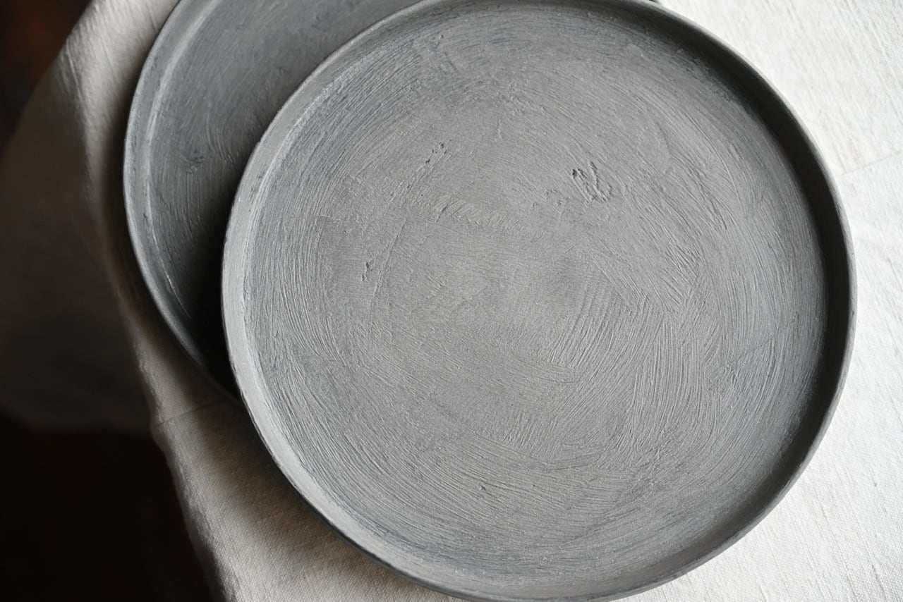 ツヤを抑えた濃いグレーがカッコよくフチありですので汁気のあるものへもお使いいただけます。