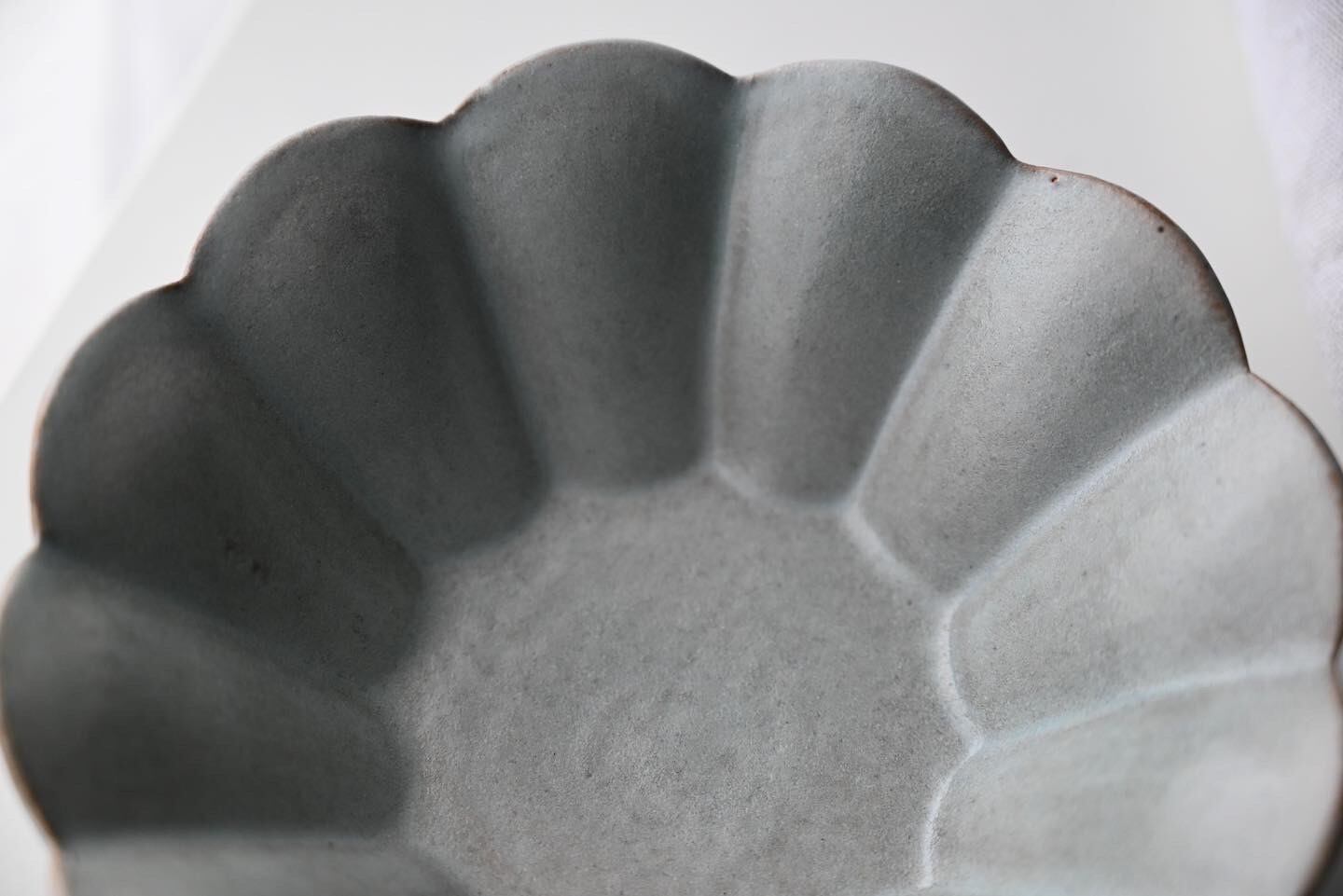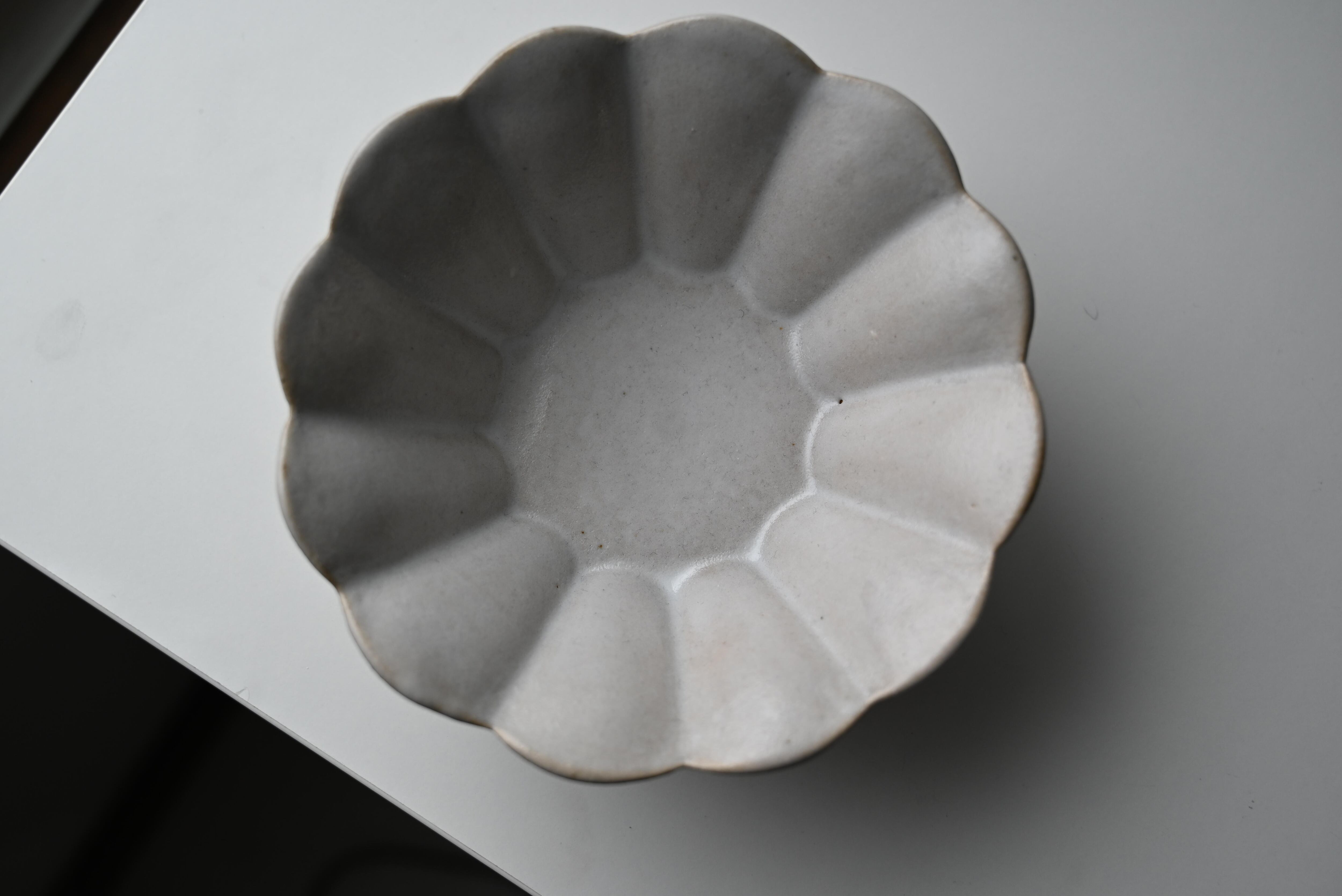 こちらは輪花鉢。12輪の模様がふっくらと感じるほとなめらかに丁寧につくられています。