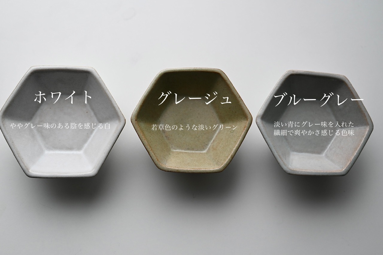 こちらは六角豆皿。均一な六角形で返した姿も美しいです。