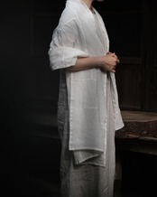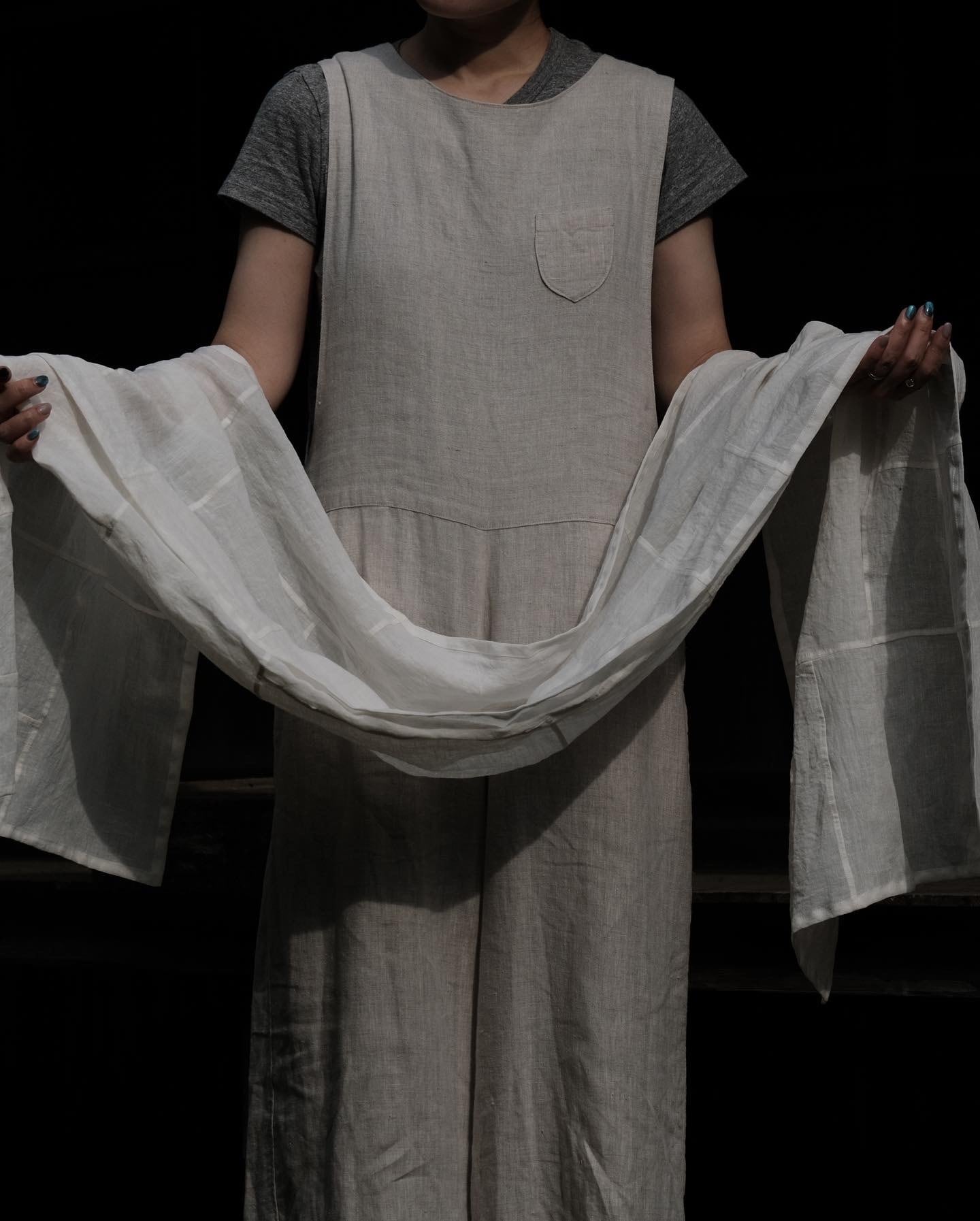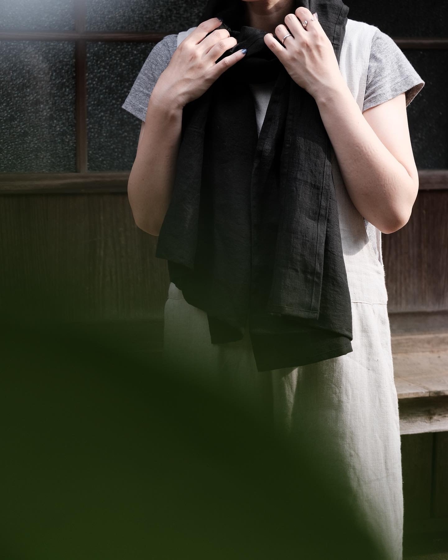 良質なリネン地に同色の継布をして表情を出したストールです。