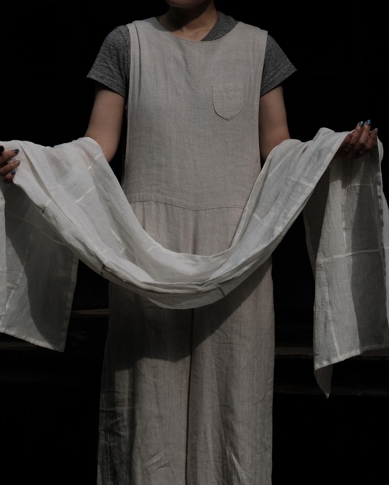 今回は同リネン生地で新作のポジャギストールをお届け頂きました。