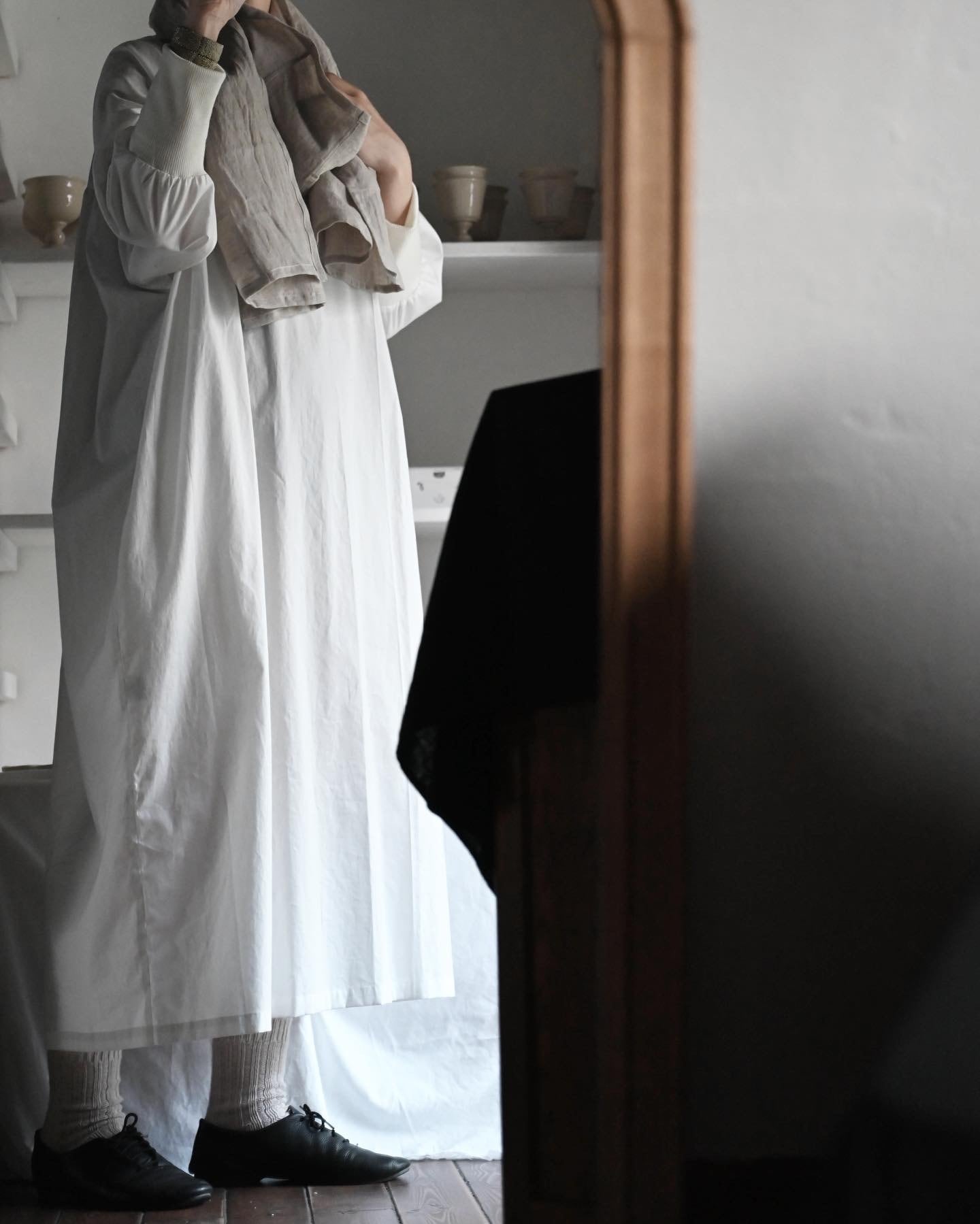 良質なリネン地に同色の継布をして表情を出したストールです。