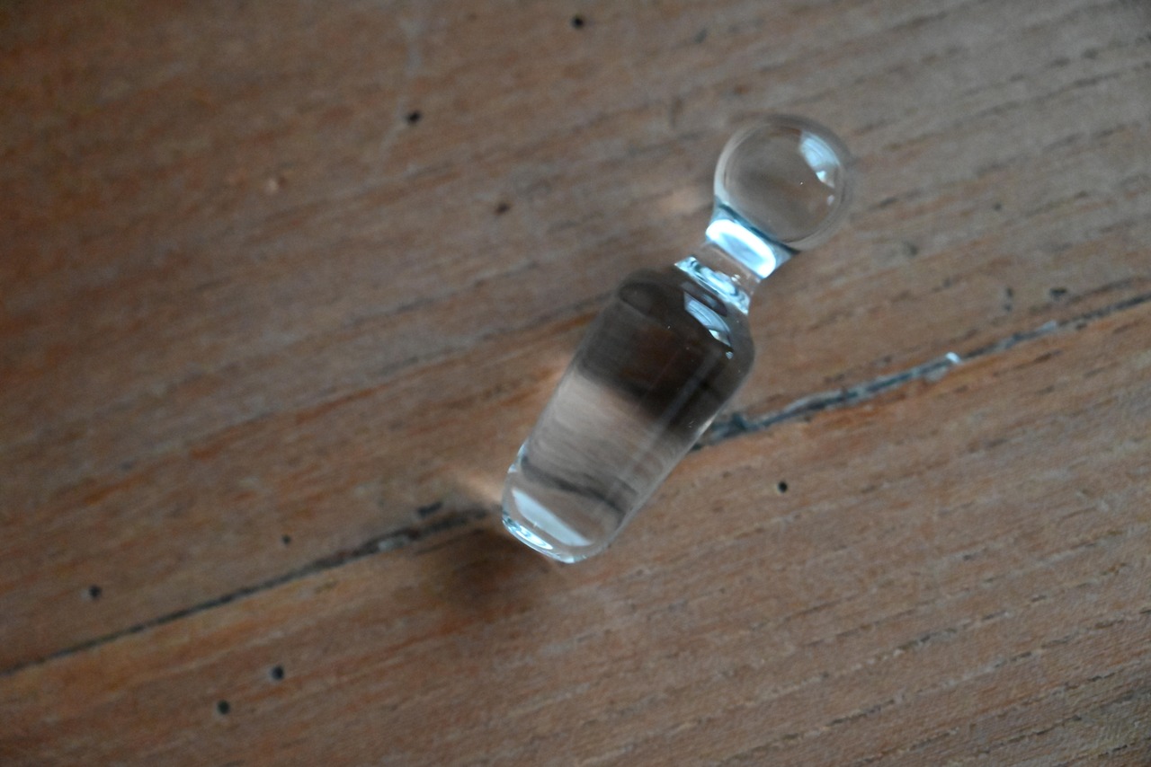 下部がふっくらした美しいフォルムと繊細な薄いガラスが素敵な作品です。