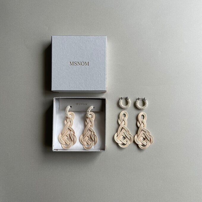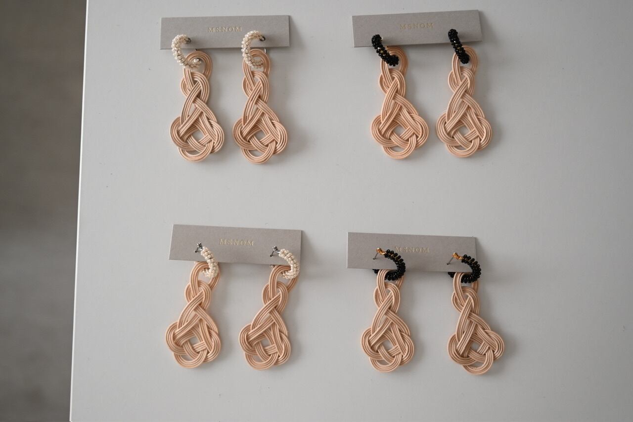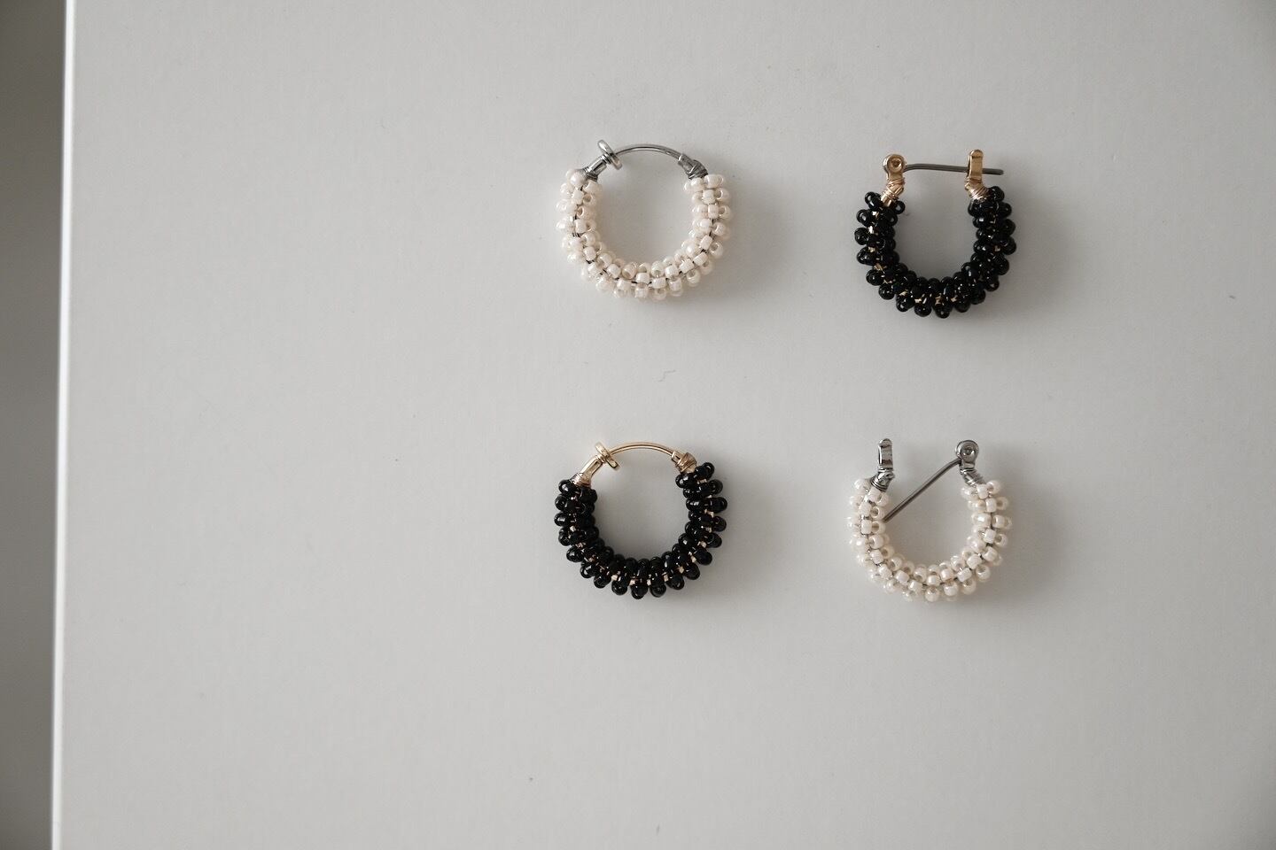 極小ビーズを使ったフープピアス、イヤリングと組み合わせ、お顔周りに華やかさをプラスしてくれます。