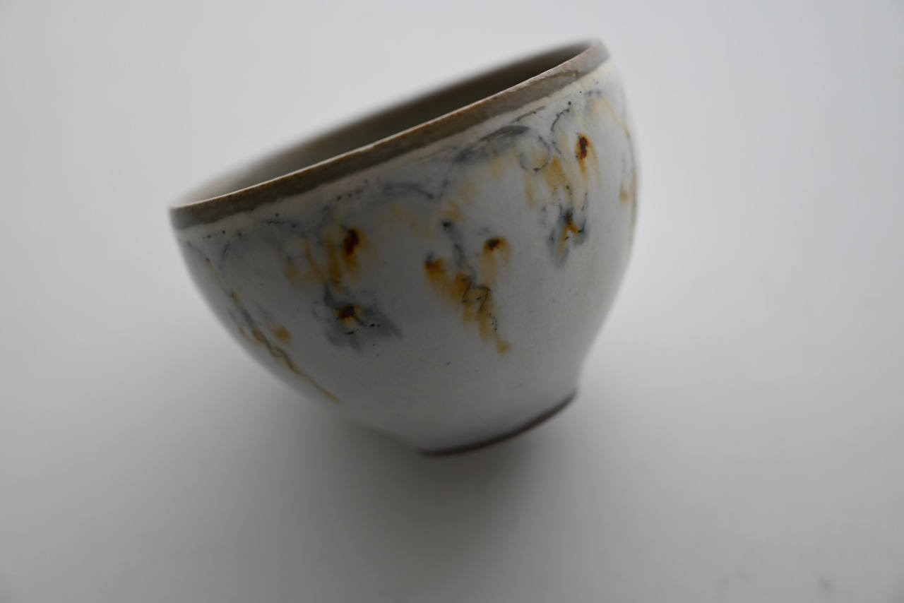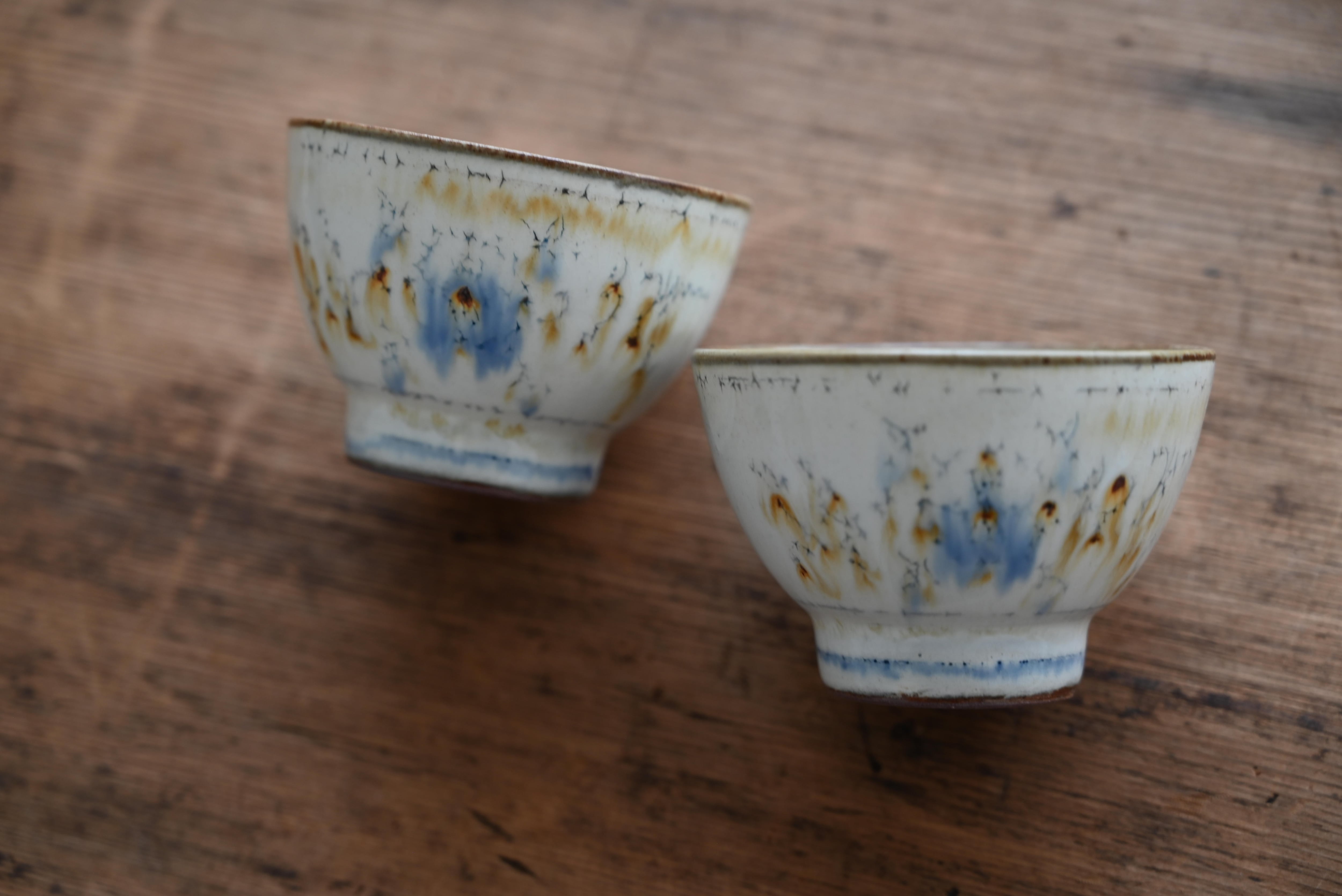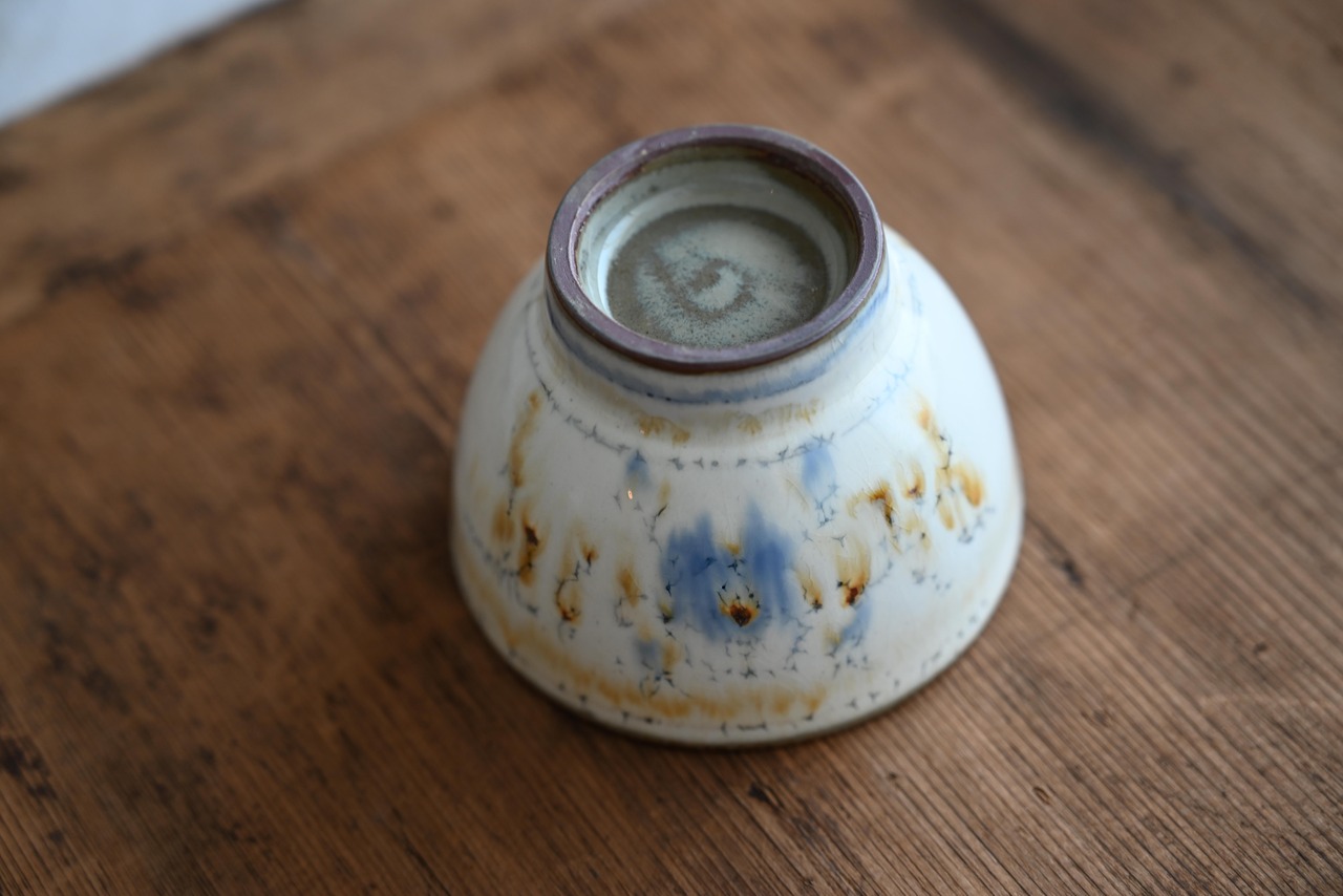 上釉が流れるのに伴い呉須や鉄の絵柄も流れ滲んだような表情となっています。